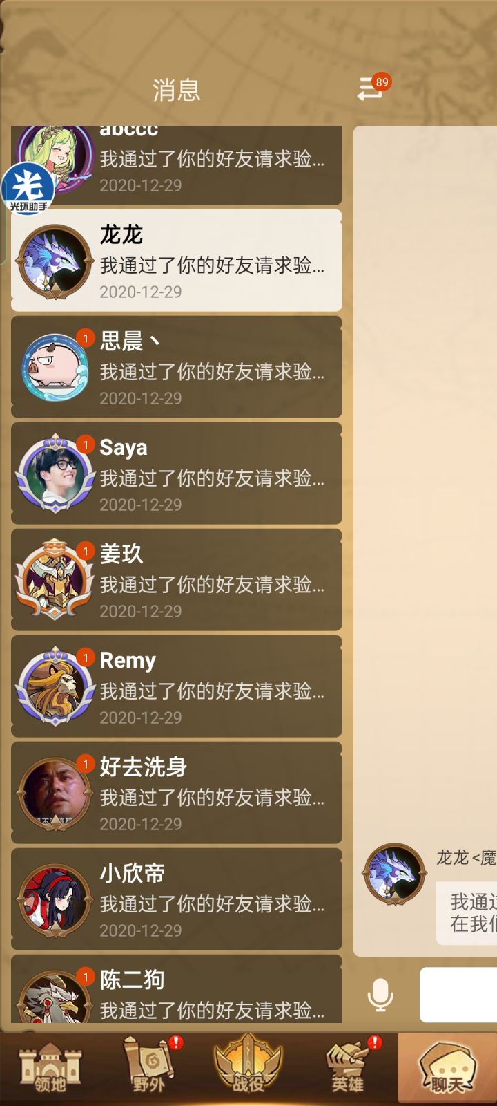 建议一键清除聊天界面的验证信息看到那么多提示怎么沟通交流连点都不想点开吧,不是团本也不会想用这游戏里的聊天界面吧!还有就是团本里面居然没有爵位提示还得自己自己找