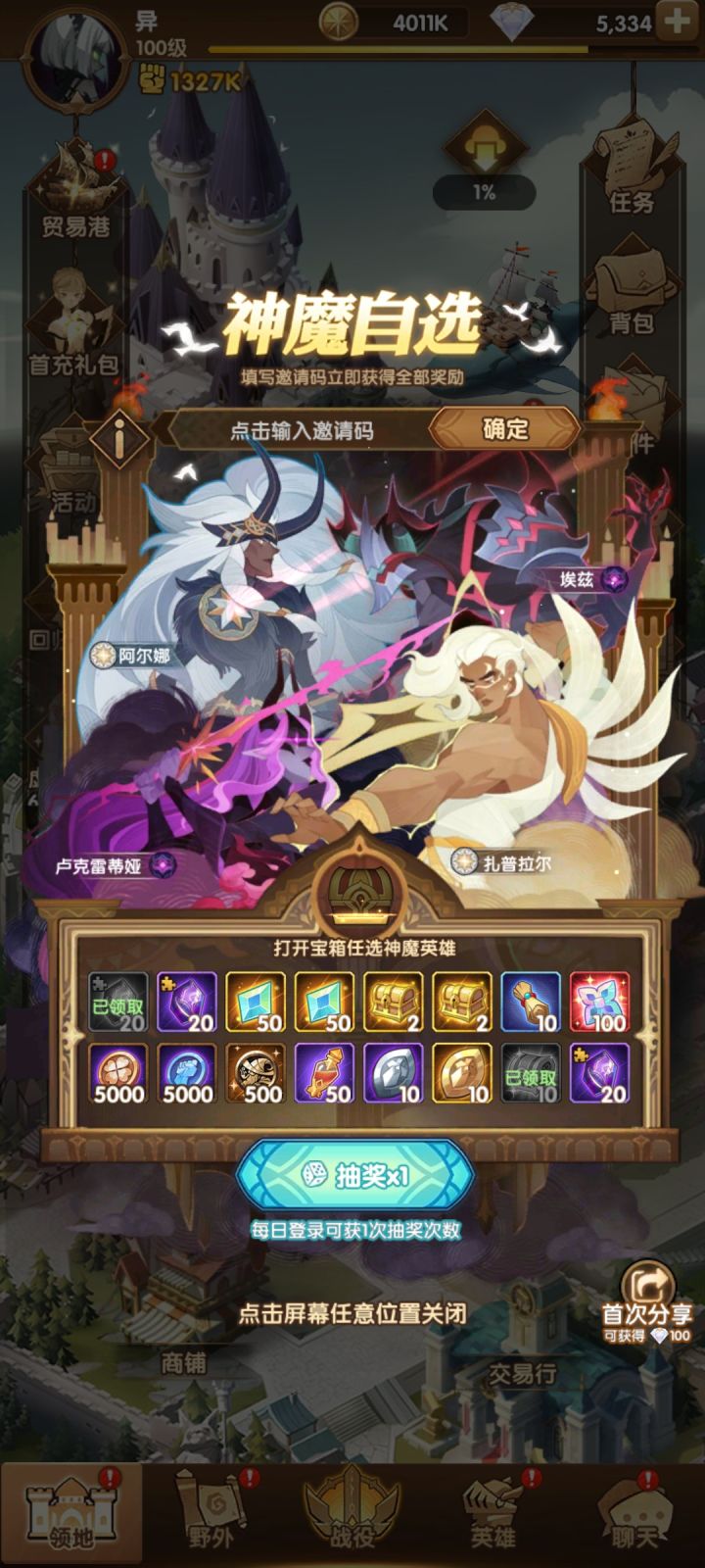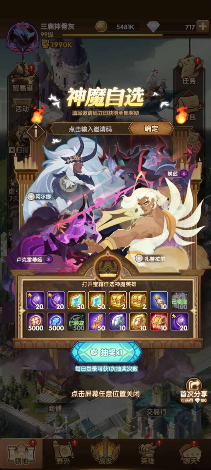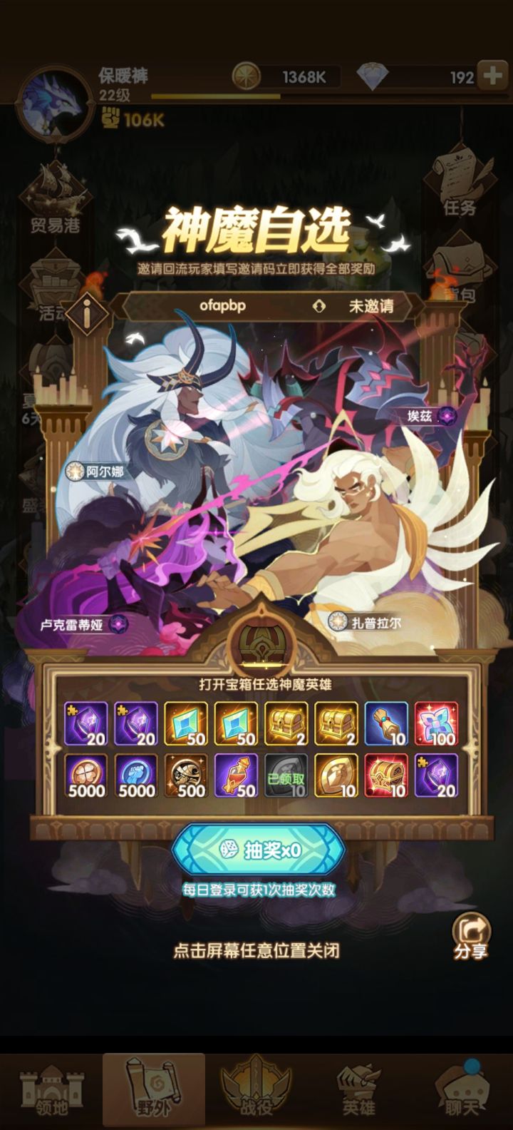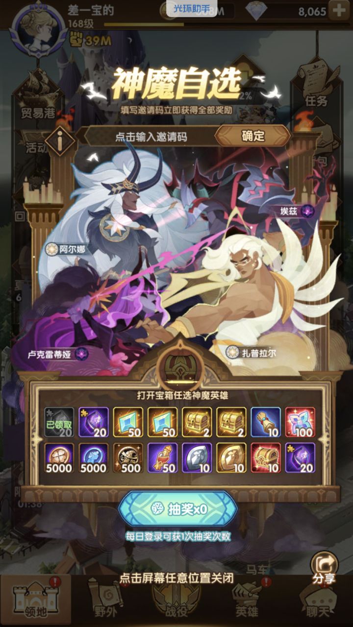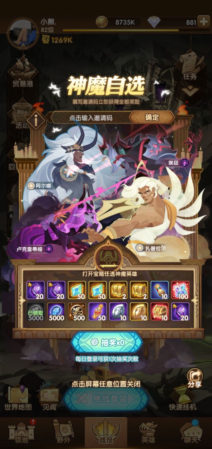 回归玩家,来个码,现在卡在15-6,麻烦给个搭配,然后神魔箱子选什么