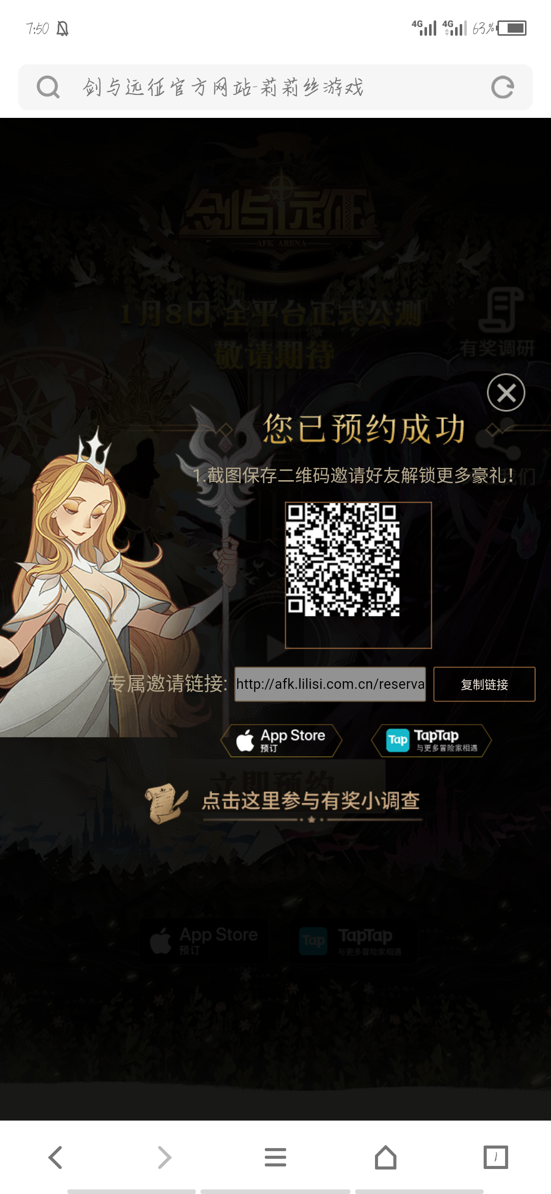 http://afk.lilisi.com.cn/reservation?code=l6pdXZ点了的兄弟链接发楼下吧,我点了会回你的。