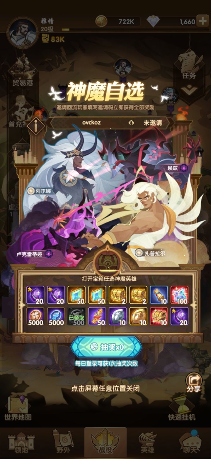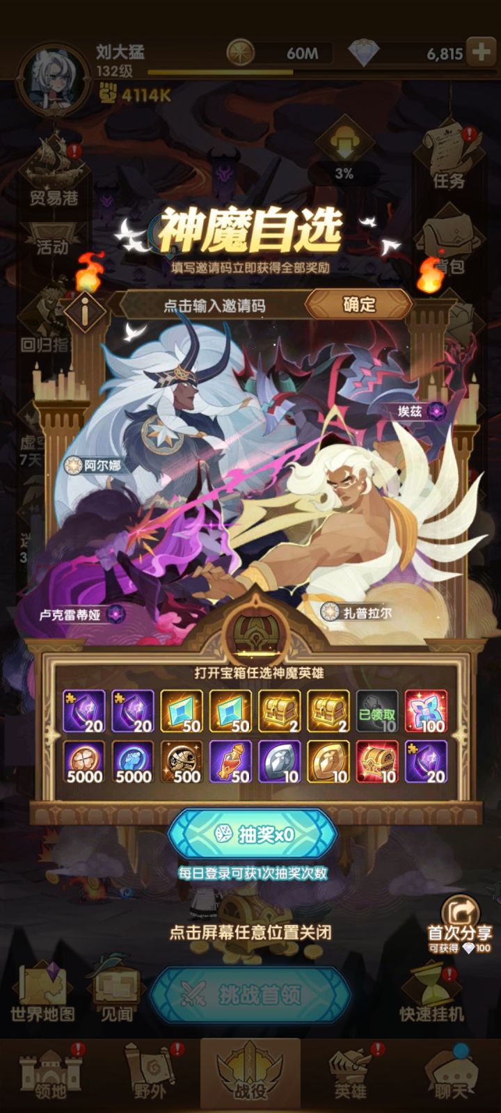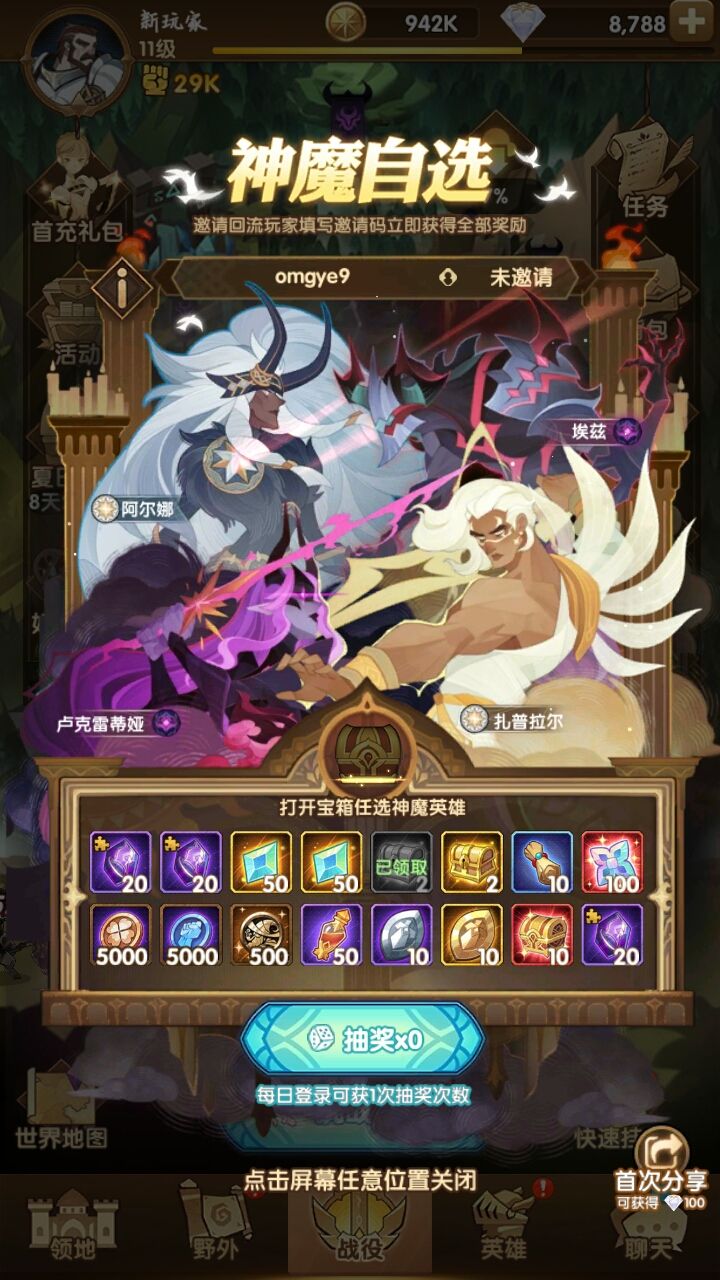 新!兑换码:of1z5b 奖励:夏日重聚幸运骰子×20 + 神魔角色×1(夏日重聚活动仅限回流老玩家)