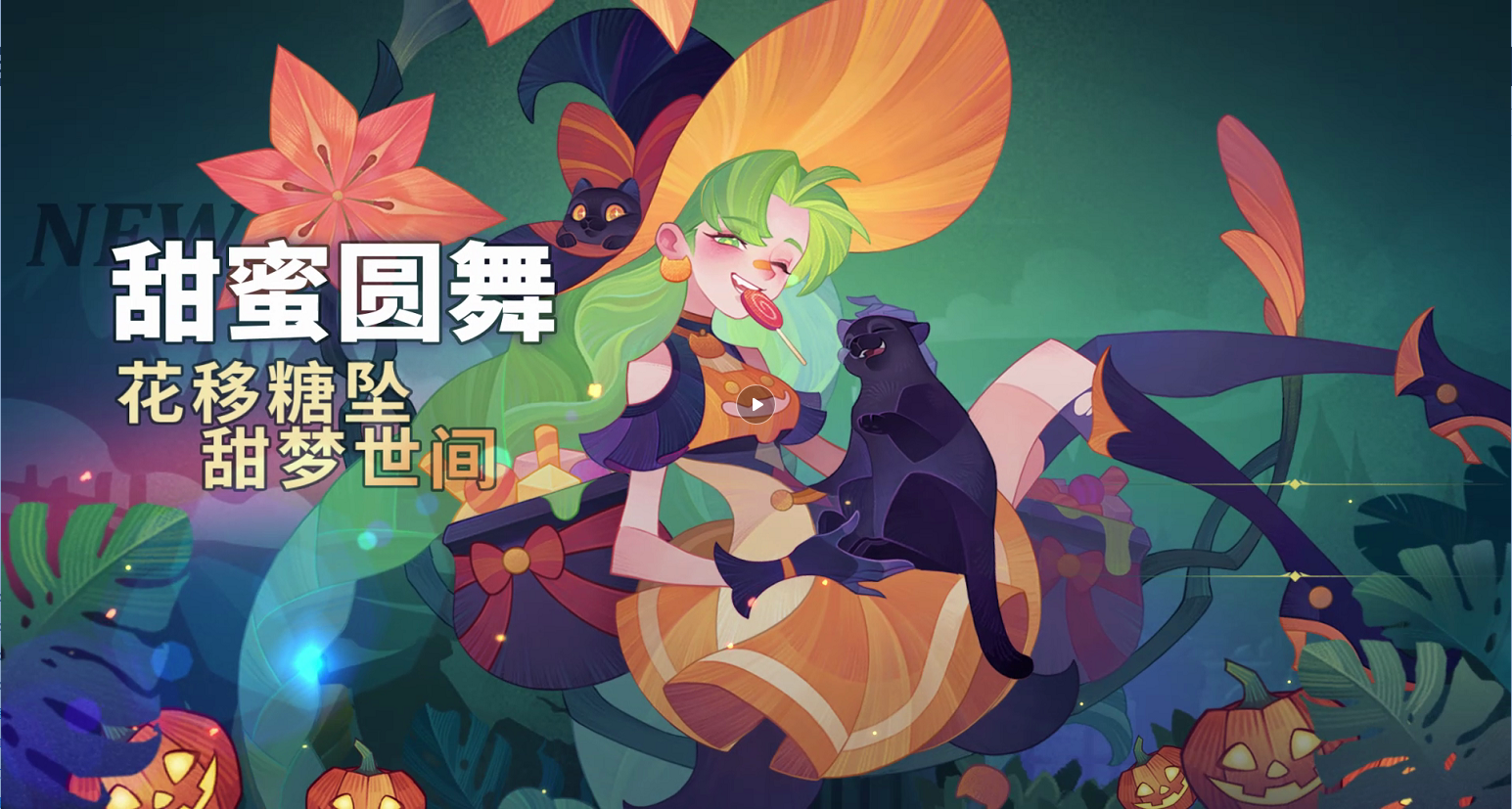 一年一度的回魂之夜, 芙蕾拉换上新装,乘上魔杖, 去给伊索米亚的小朋友们送糖果啦~ 糖果从空中洒落人间,就像繁花开遍田野。