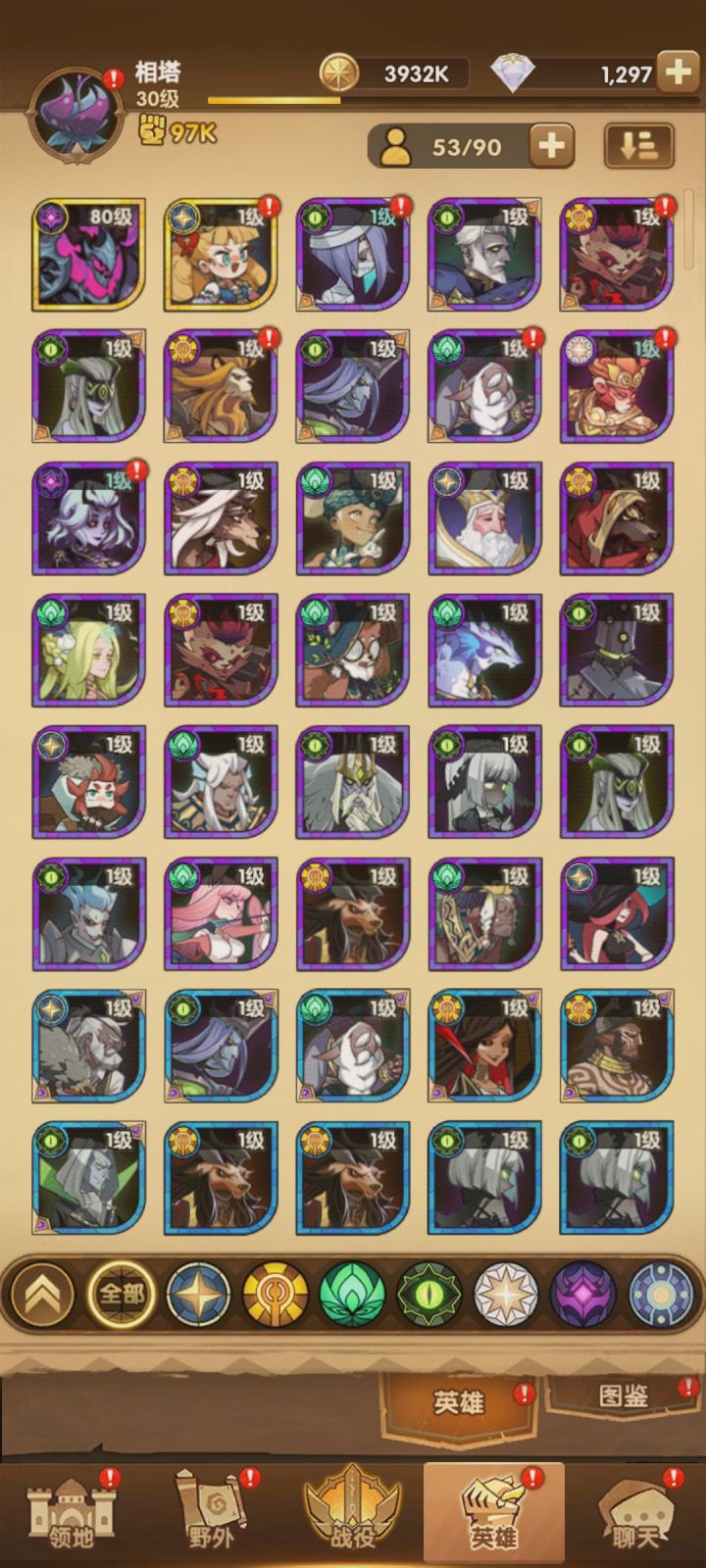 目前只有狐狸30960(还差200红刻印),魔女30960,东候309,三眼20960,近卫20930。黑妹30930。现在卡在35图,不知道怎么组四队……