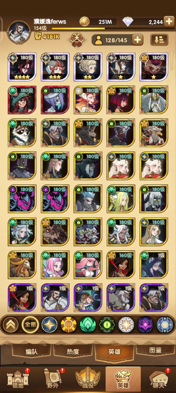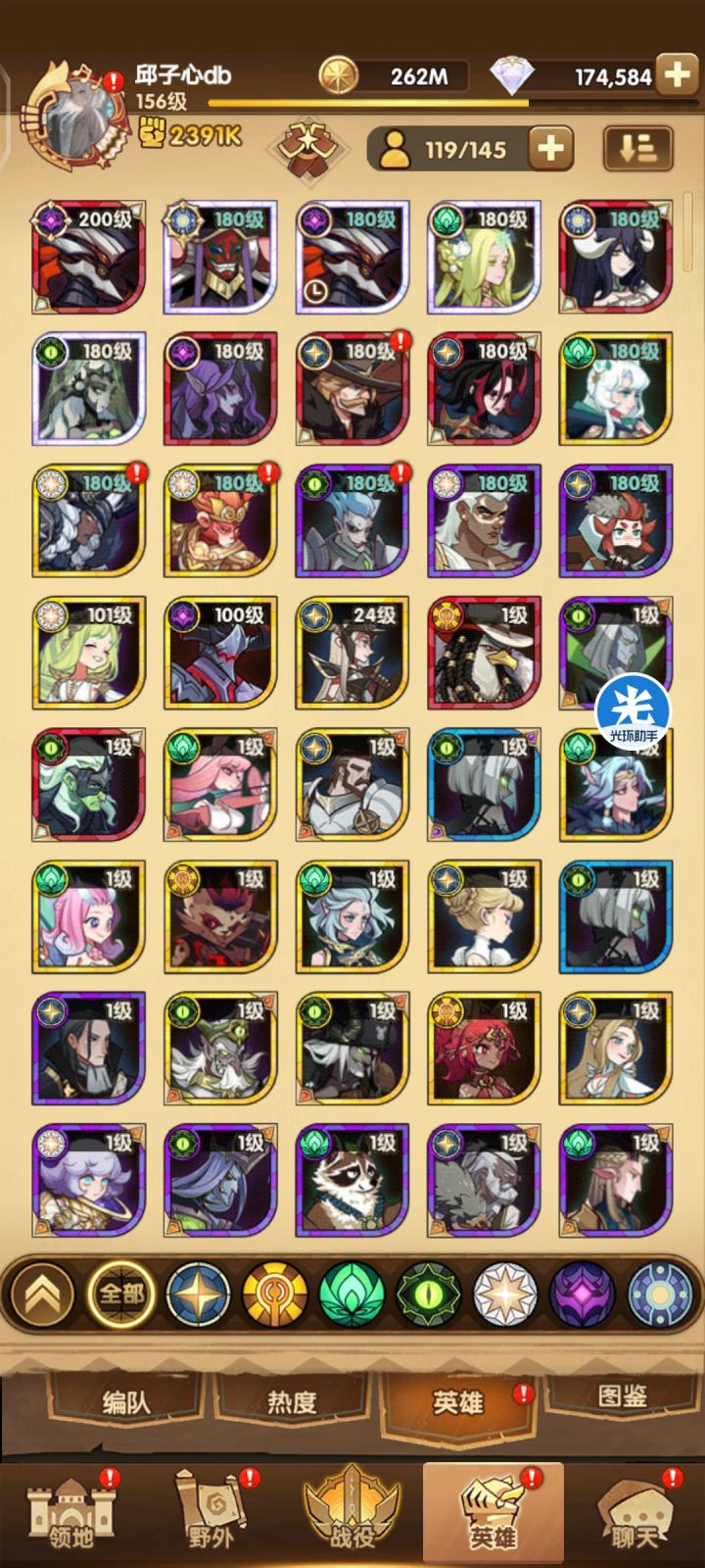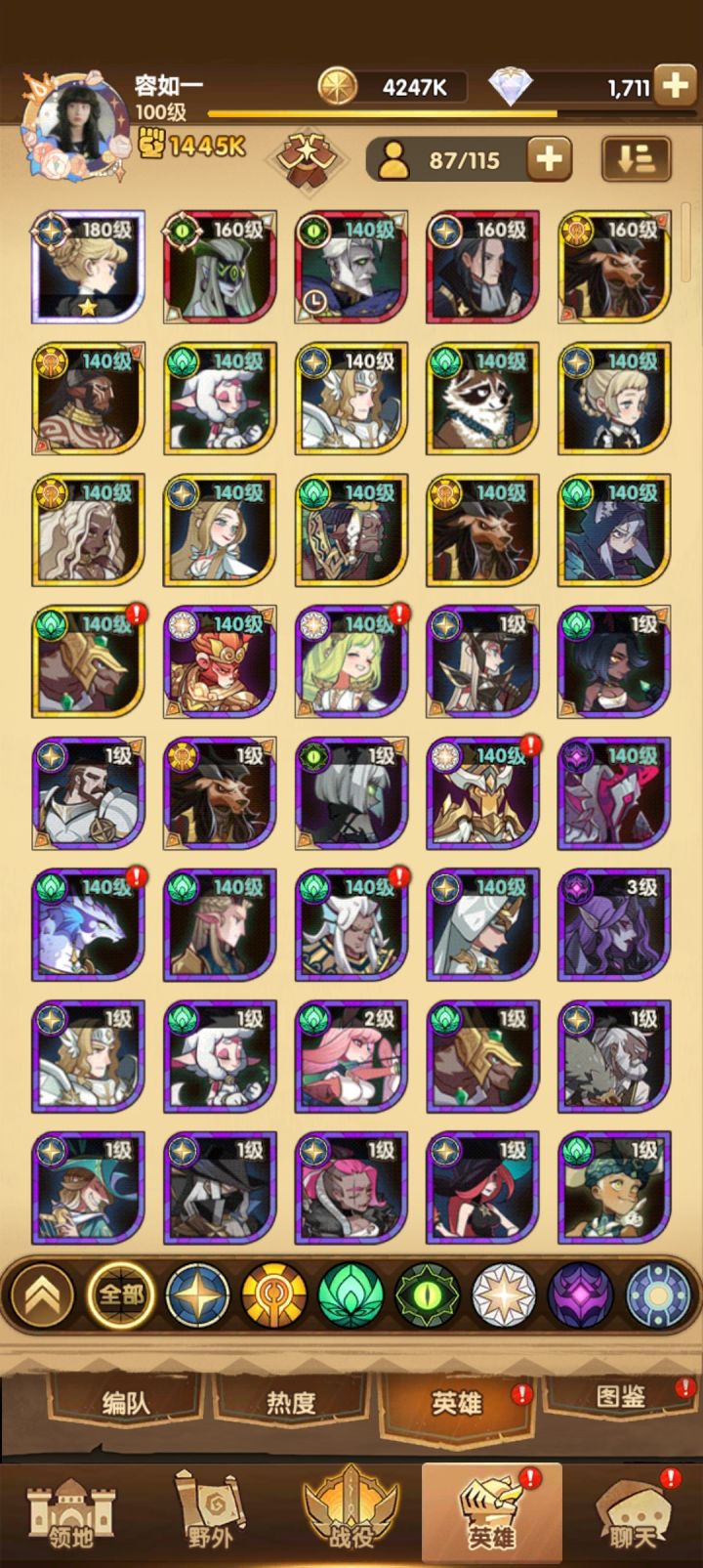 box如下,推到35章了,需要四个队。求各位大佬看看怎么配。(ps.我看到有强度榜 负罪战神安萨特 排在很前面,但养起来后没感觉强?)