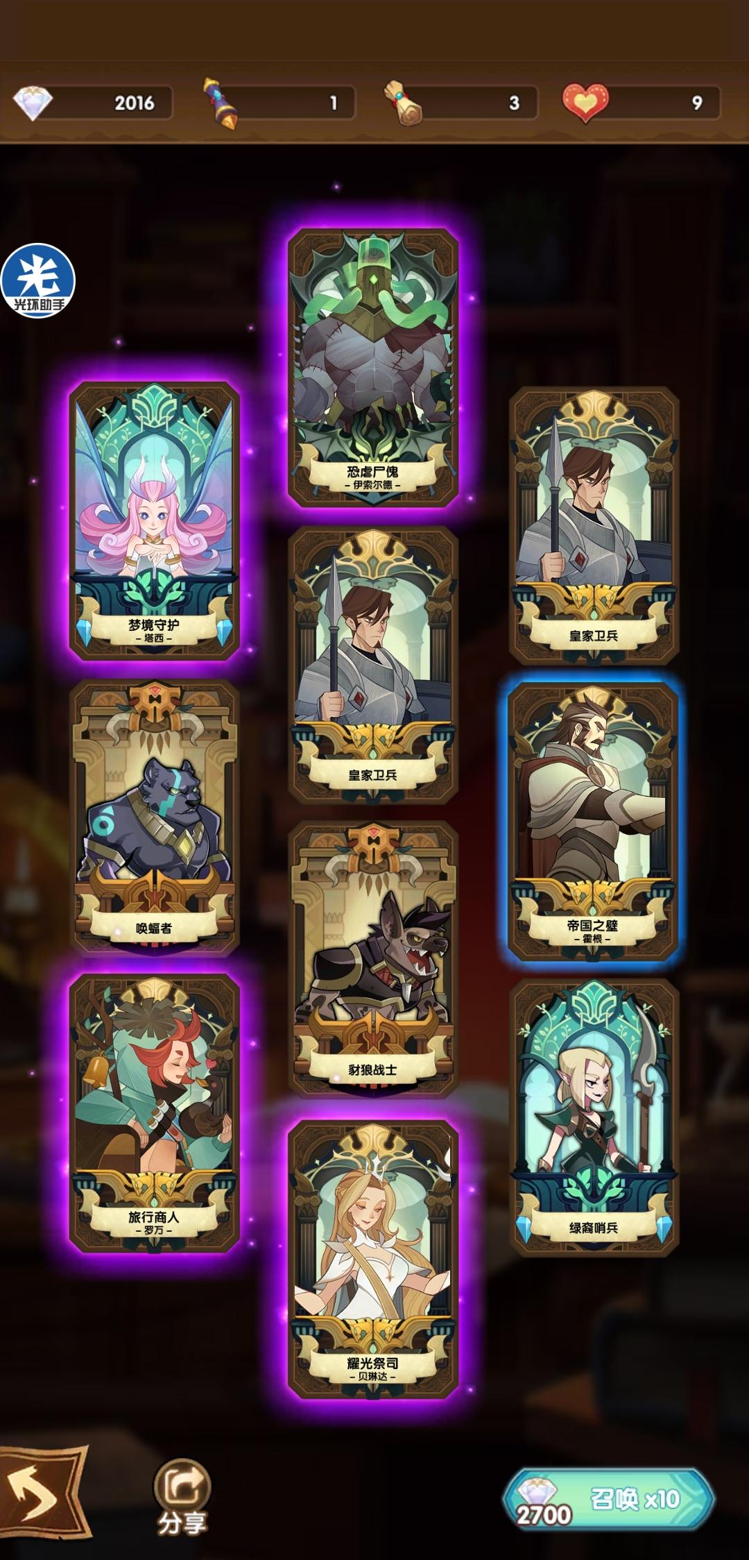 买了个自选号,没抽着凤凰双子,三宝也只有紫+,哈哈哈,女妖一个,龙弓有6个😂