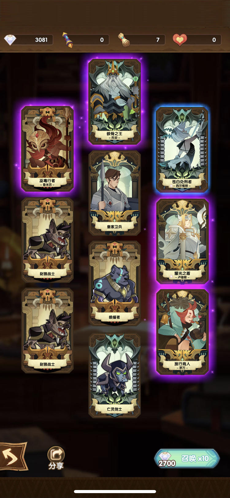 今天50连,就出了一个光女家具,心态有点不正常。不过十连爆了四个紫卡,用处不大,也算安慰自己吧…你们呢,大家今儿个欧吗