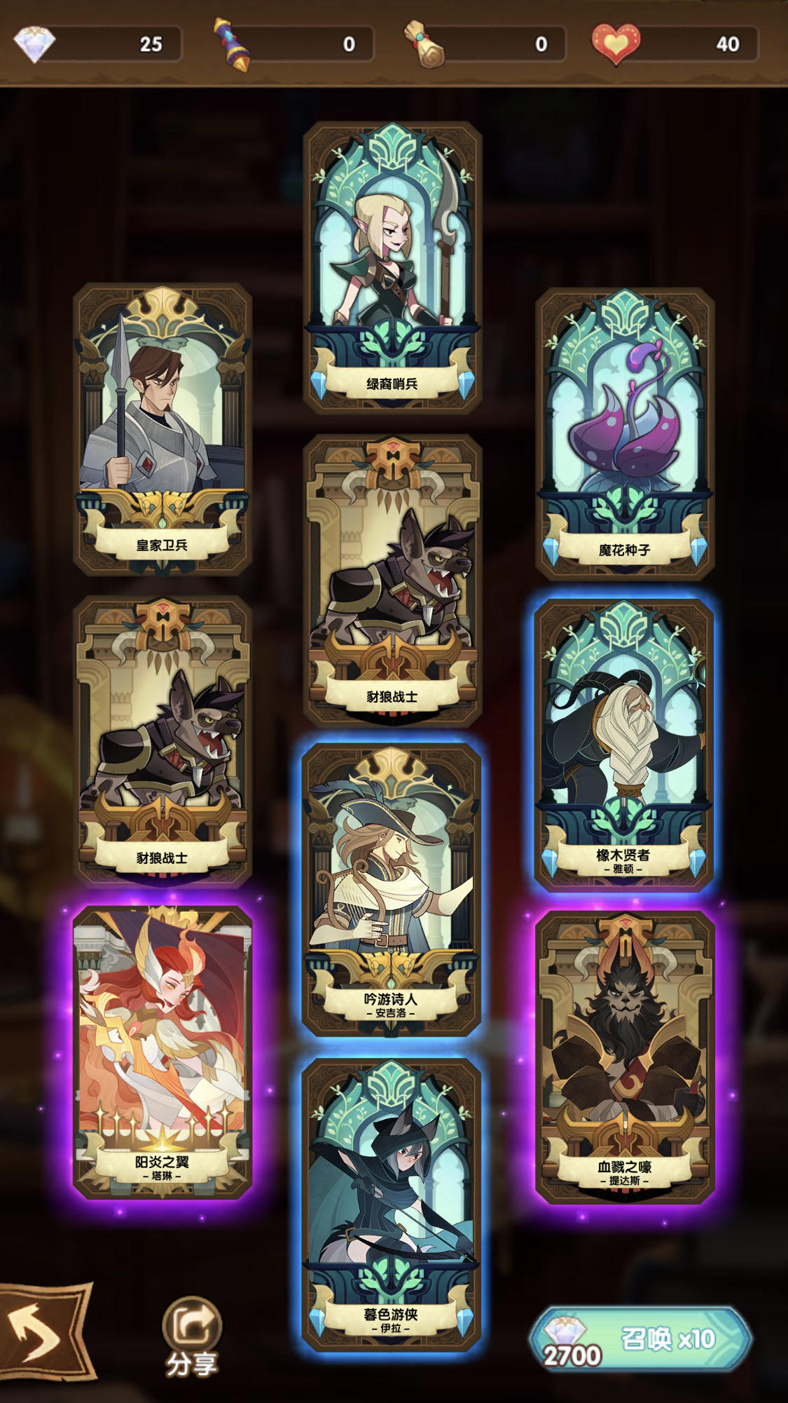 6紫碎,20普通,20种族,10友情,10自选抽奖