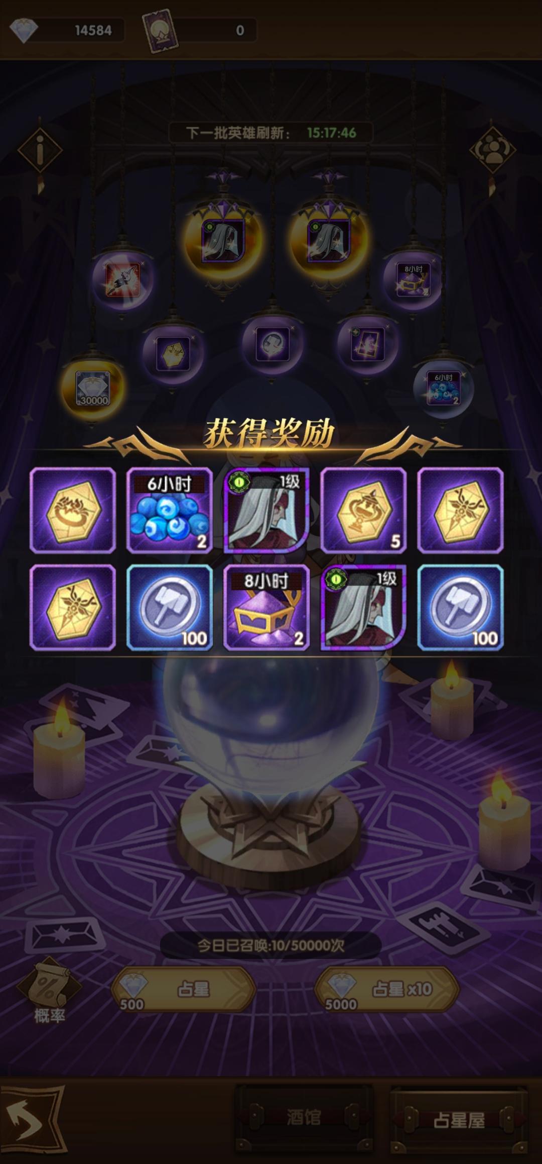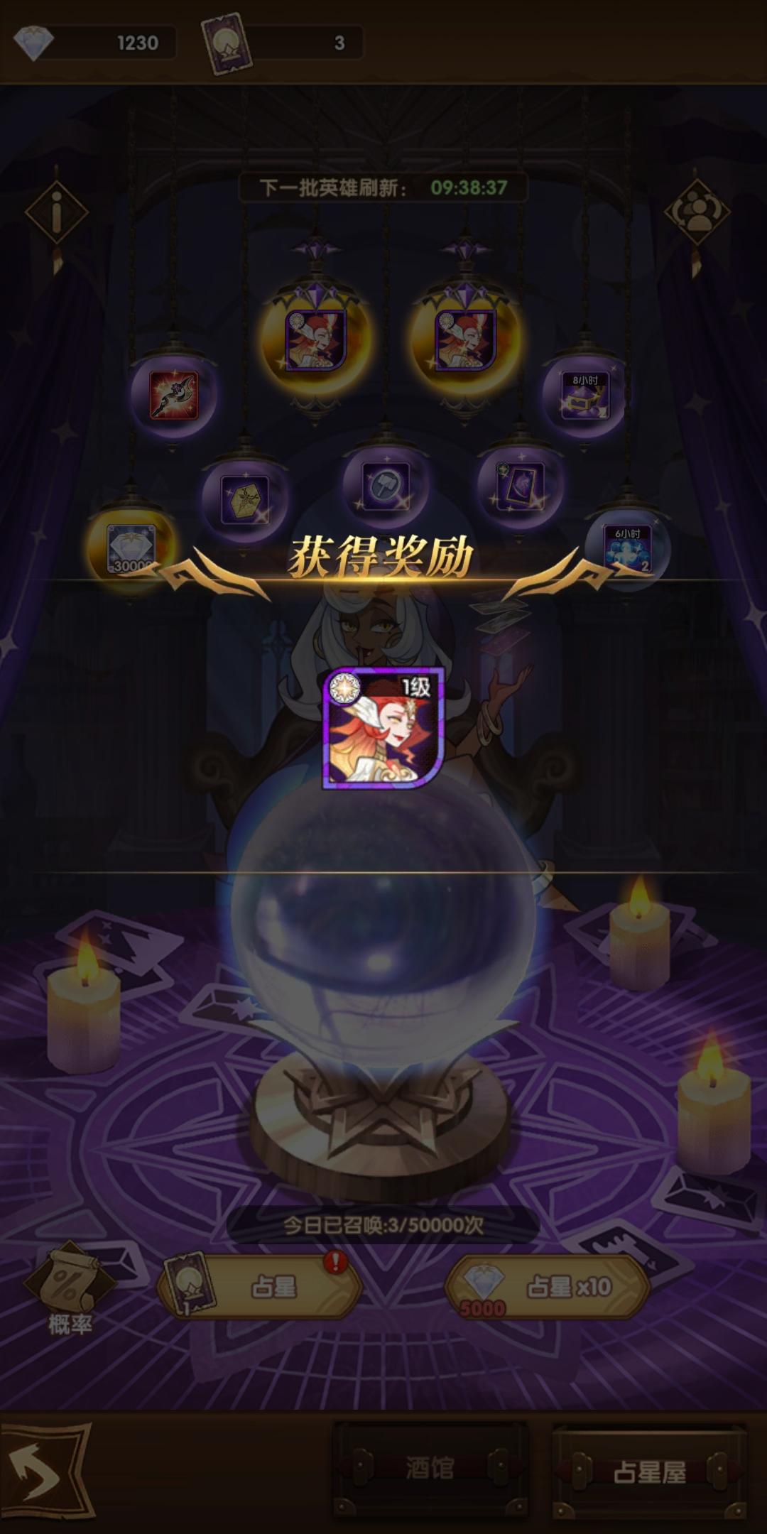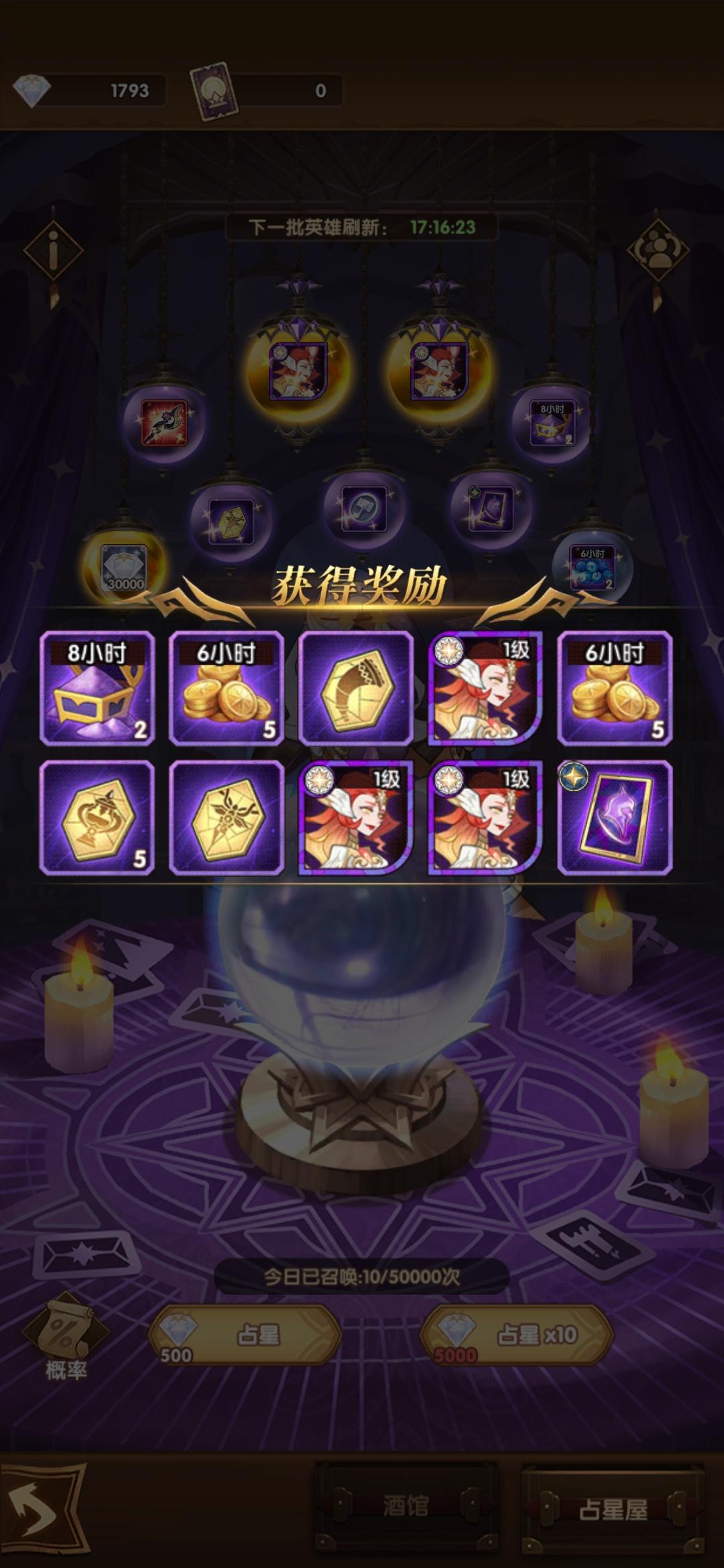 占星之前大概有四 五十次没出卡了今天蛮血塔135送的五张终于狗拖了