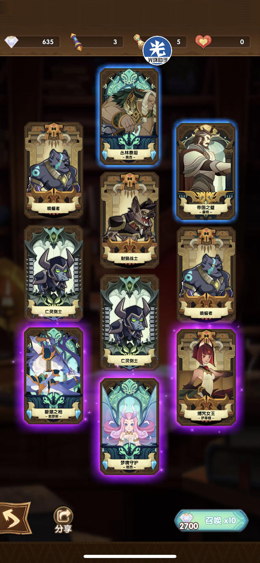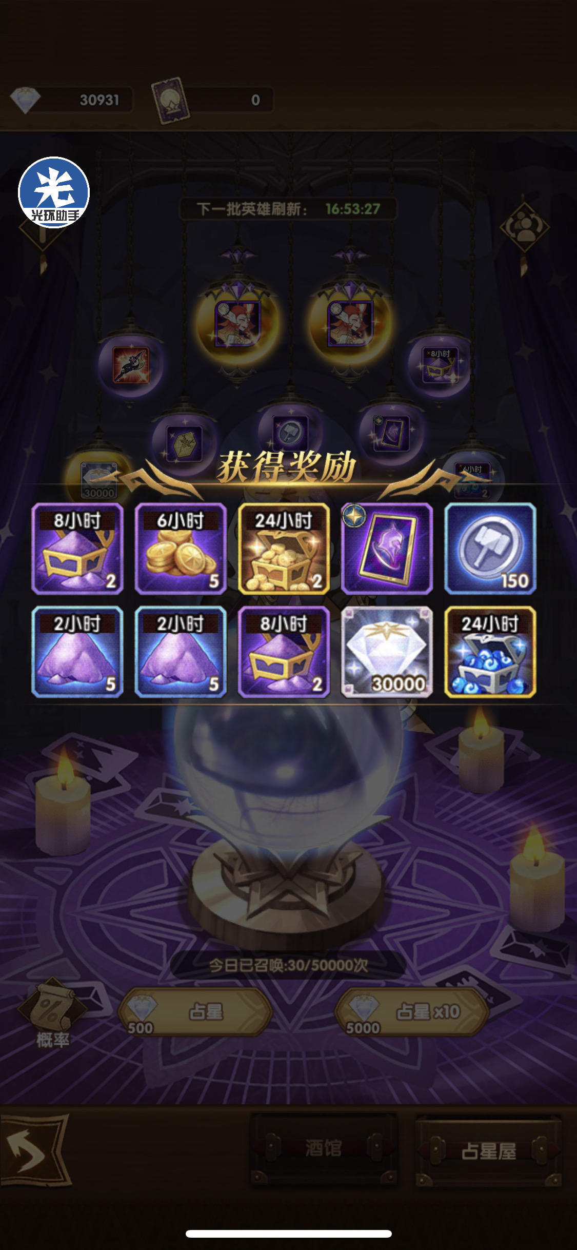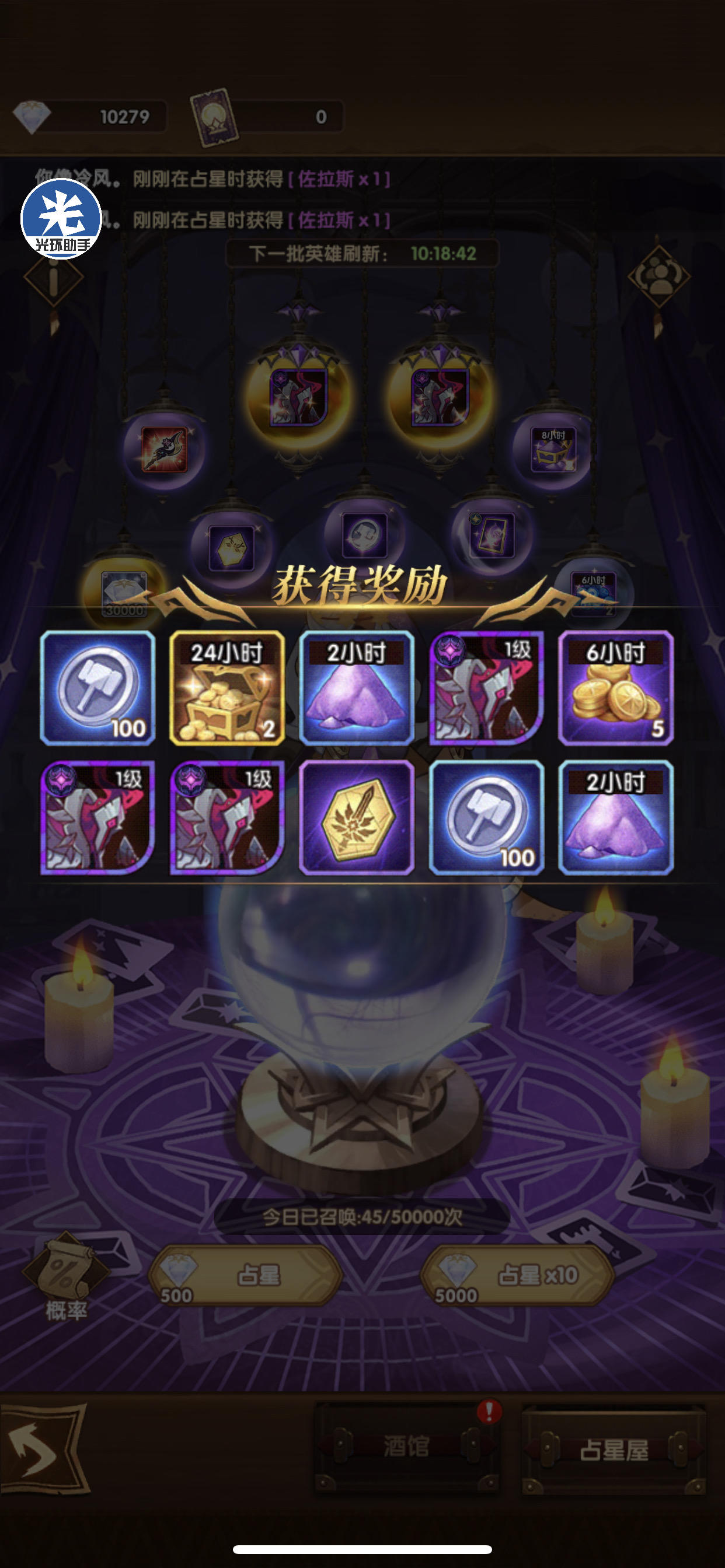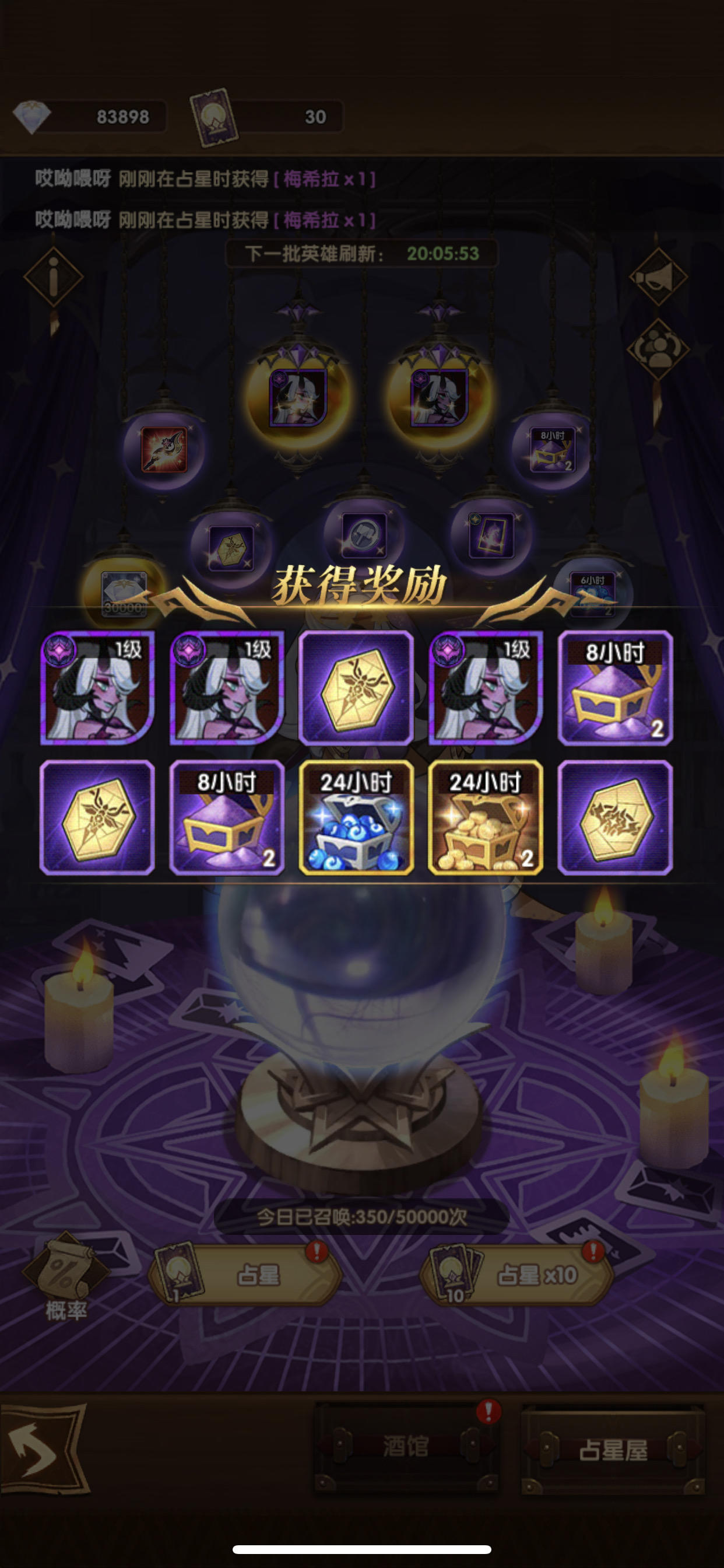占星之前大概有四 五十次没出卡了今天蛮血塔135送的五张终于狗拖了