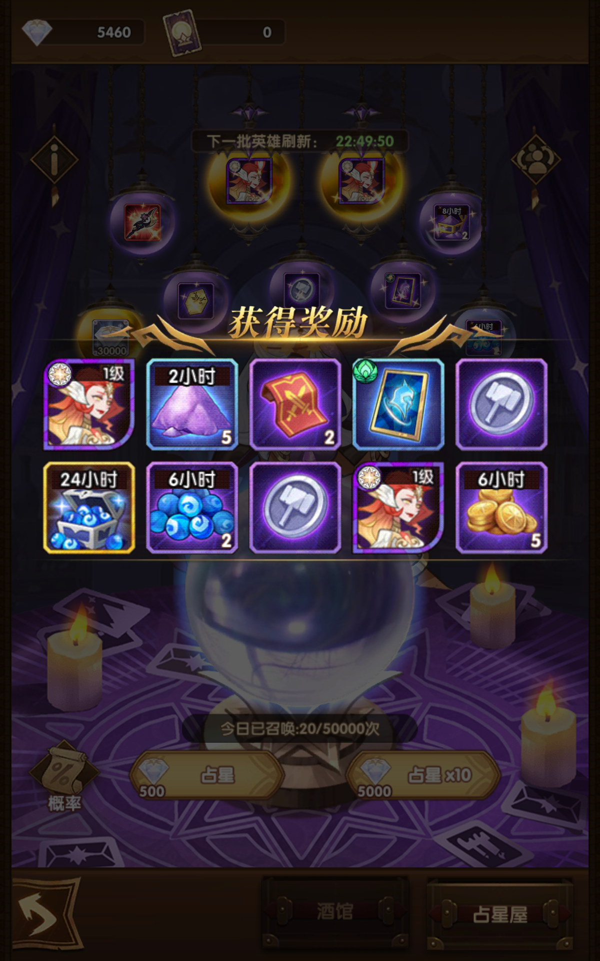 玩游戏从开始到现在,零零散散总共占星了六次吧,早上出了,看帖子差不多都是这种5或6次?欧皇除外,还是不太推荐占星,除非四族都五白了。