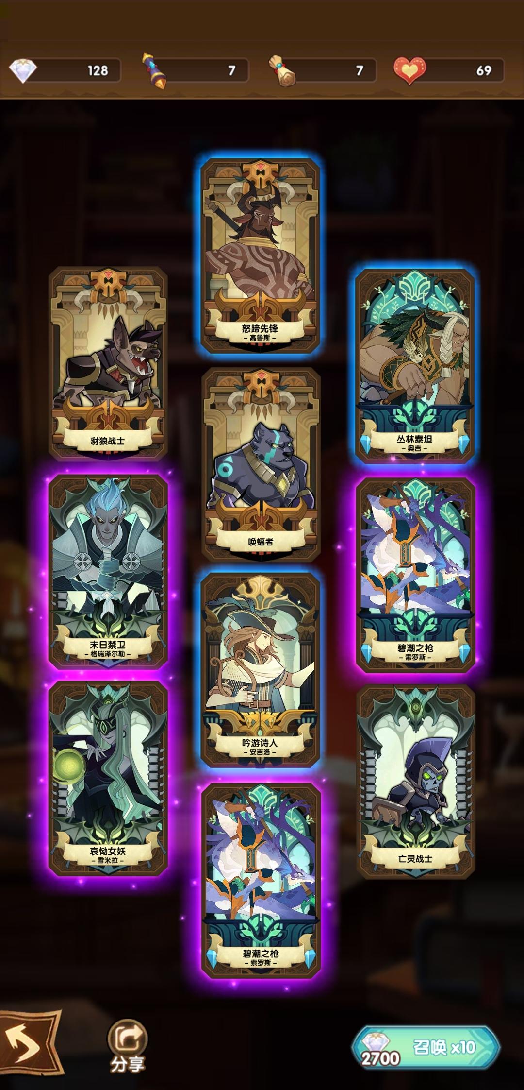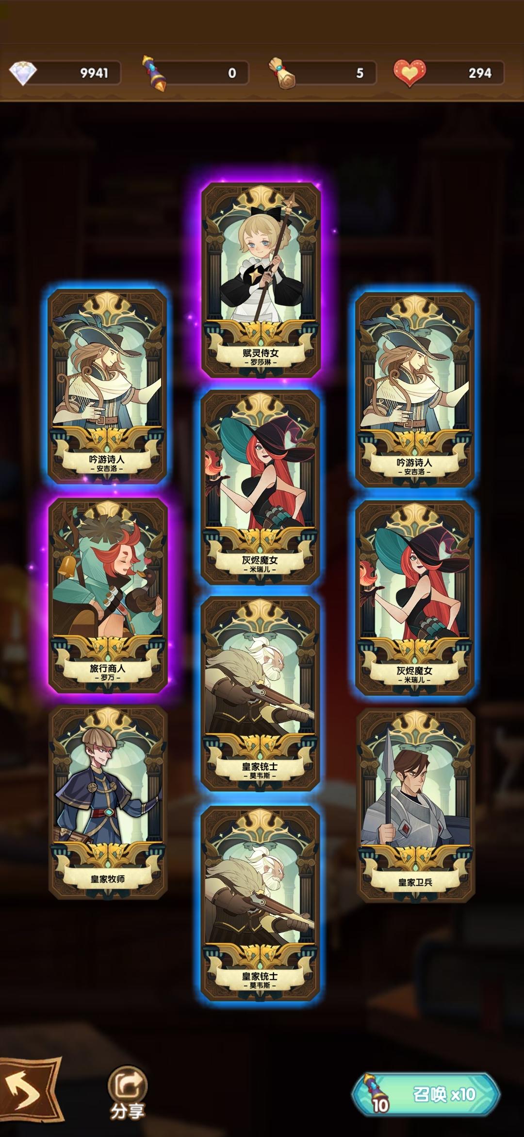 这是6.6号的得了30种族抽,还好没保底。满100又来个紫卡今天6.9打完迷宫,迎来了亚瑟,然而,我的龙弓还是个小妹妹😃🤪🤪🤪