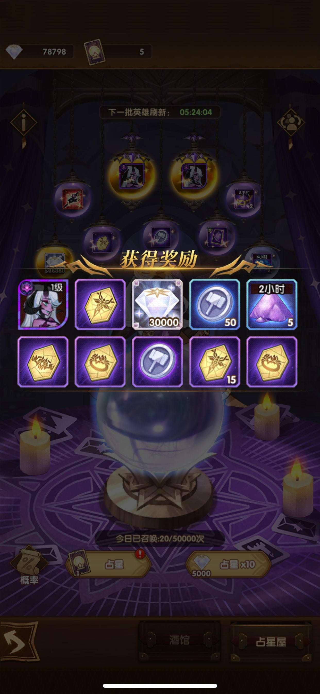 占星除了第一次十连保底出,接下来4次十连啥也不是,想哭啊,下一次10连都到保底概率了,没钻石了