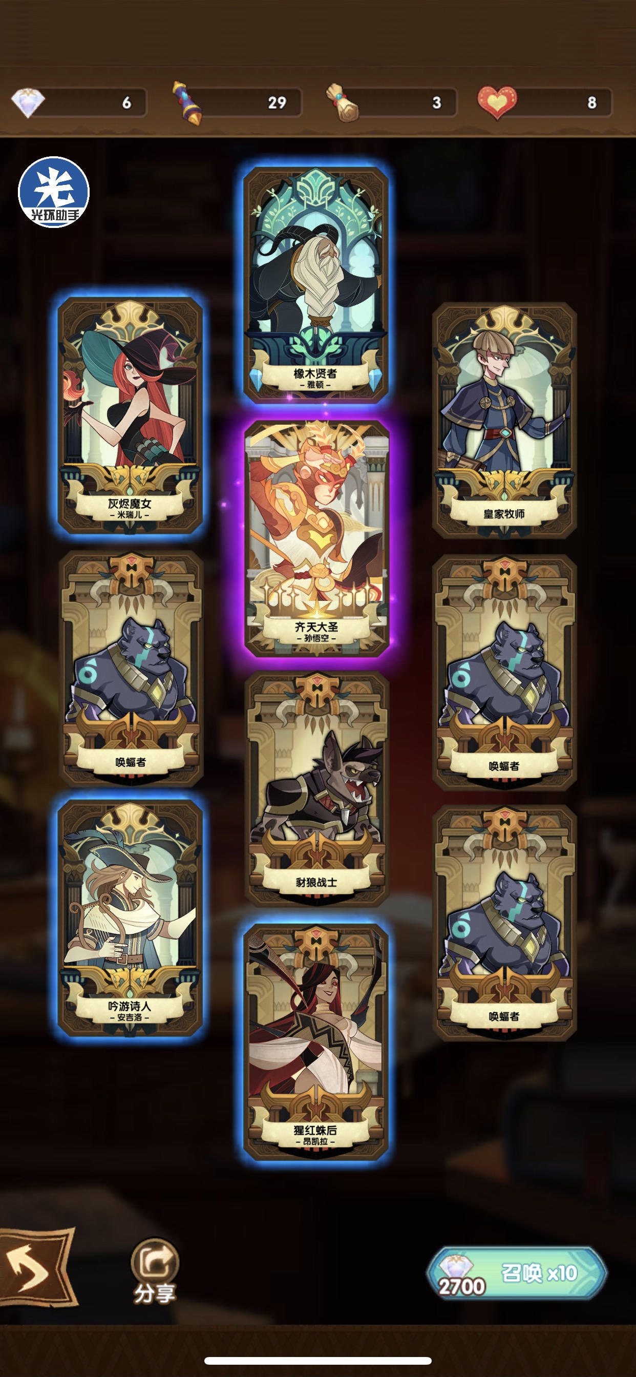 前面8100钻抽了一个猴子 然后遣散分换了一个石头开了一个凤凰。今日神魔日