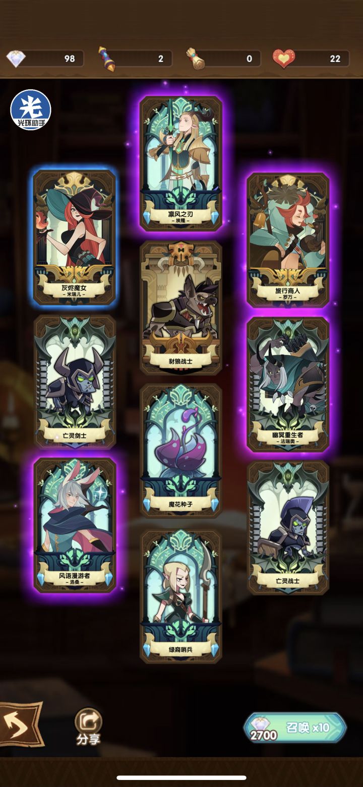 连着八把十连,其中还有两次种族,真就一个紫卡都不给啊?!我不怎么氪金吧但也多少氪一点,已经半个月了我就想吧女妖升上红而已,死活卡在金加了,亡灵的蓝卡也是少之又少,lls我求求您做个人吧!