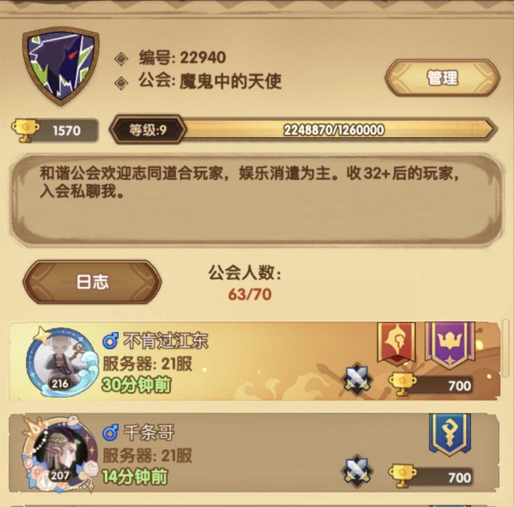 活跃有爱气氛好的满级工会招人啦!653487