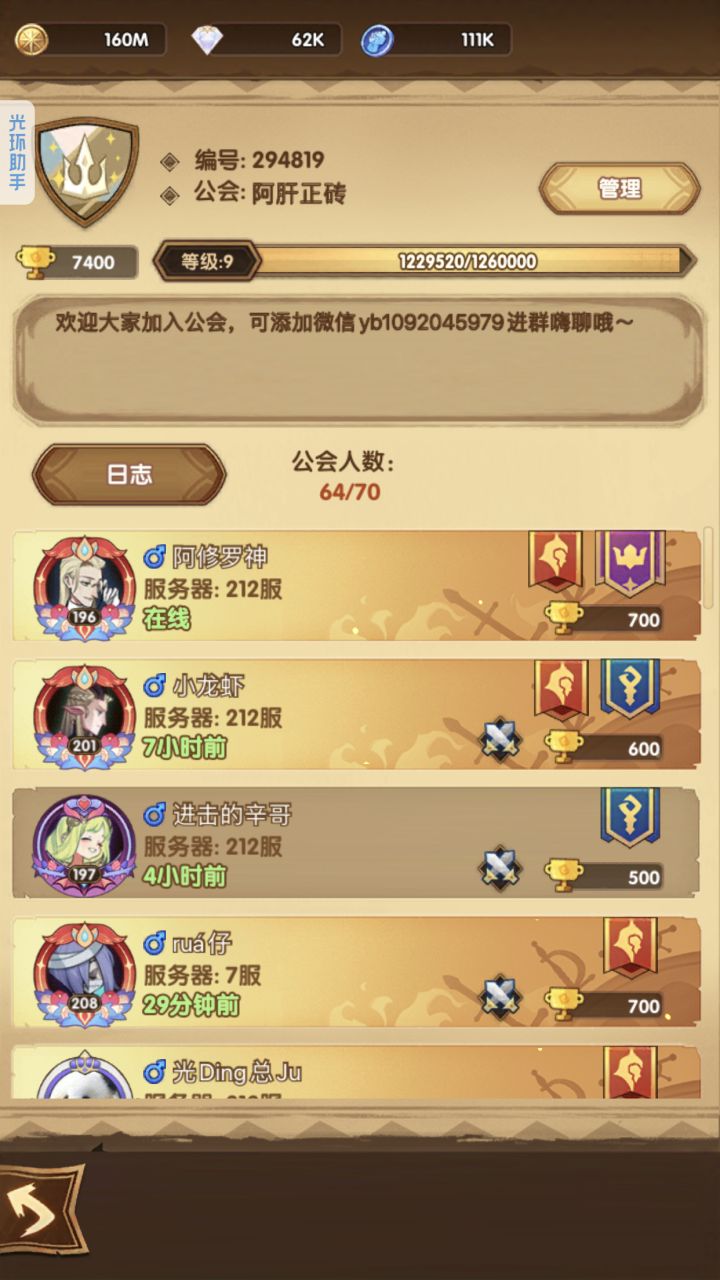 公会有微信群,大家都很活跃! 已经清理几名不常在线玩家 。