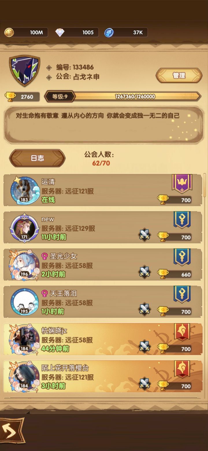 9级公会187536欢迎你的加入。佛系公会一枚。无任何群打扰。无任何加入要求,目前有3个空位。该有的福利都有,团本不肝。