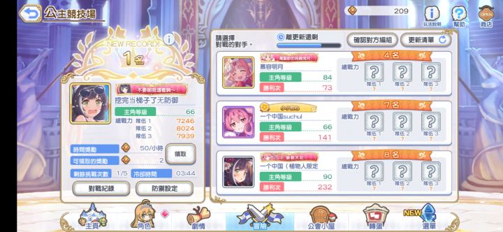 刚一挖完,我就把防御下了,改了名字,因为我一路上也踩了不少ti子,互惠互利。昨天各种加速器都上不了游戏,今天终于下了一个能连上的,德国节点,虽然慢,但好歹能用!抽了3个十连没出新春优衣,我就想着开pjjc了,已经练满2个r7队,憋了有段时间了。搜索好友看一看60~65级的人,发现15号就开了新场,本来想着能不能等下一个场,一看上一场是9号,上上一场是2号,优衣池子22号就结束了,只能赶紧进去挖