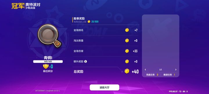 达达你做的新模式,本来加了200赛季勋章,一直都没有加,玩了一个多小时,什么都没有。
