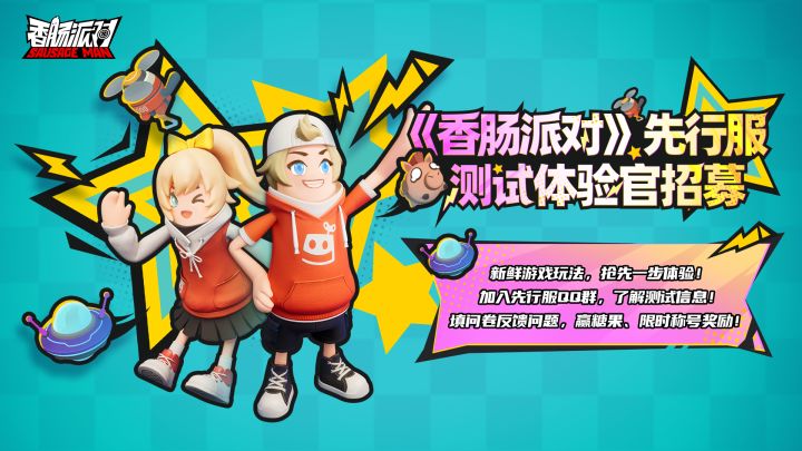 亲爱的香肠岛民们: SS19赛季先行服即将更新(具体更新时间请等待后续发布的先行服更新公告),iOS端&安卓端《香肠派对》先行服测试体验官招募开启,欢迎各位肠肠前往先行服体验新版本内容。加入官方先行服QQ群即可了解测试信息,并提前体验新版本玩法内容,填写先行服游戏内问卷的肠肠还可以获得限时称号与糖果奖励!◇先行服介绍◇《香肠派对》先行服相比正式服,可以抢先体验新玩法、新活动等新奇有趣的游戏内