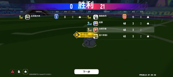 遇到bug的来报道1.一队三个人,另一个是卧底。2.多人足球大乱斗