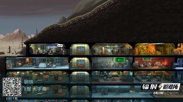 估计有很多和我一样,被辐射避难所的新奇画风和地下房间的玩法吸引。今天给大家介绍一下各个房间的功能作用。避难所大门,最高3级,最多放在房间里5个人,出发打副本的默认人选。战斗人员在此休整待命,随时准备探索废土世界。主控室,目前最高12级,决定着其他房间的等级上限。升级主控室以扩张和维持你的避难所。广播室,目前最高11级,也是升级其他房间的一个前置条件,同时其等级也决定的副本地图的扩展。战