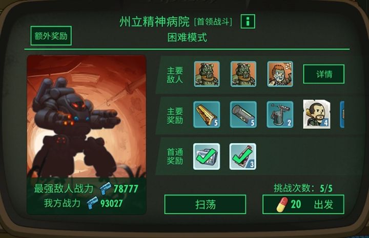 近期中秋节活动推出了月饼换皮肤合头像的活动,这对于广大玩家是是一个不错的福利,即可以换到喜欢的皮肤,又可以借机会刷一些材料,两全齐美,今天在此推荐一个材料刷取地点——州立精神病院——————————————如图此关要求的战力是78777,对于后期玩家此要求并不是很高,但是地图存在辐射自爆怪,还需要穿过辐射房间,所以队伍需要减辐射的医生,输出位置随意,能打过就行地图较为简单,进图直接向右穿过辐