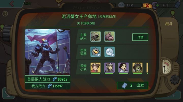 辐射避难所ol新出的活动,全面冲突,想必大家都在努力打征服点数从而获取奖励。下面我所介绍的是一个可以获得高征服点数的地图。可疑信号发射A点,探索所有房间后,最后通关可以获得共计500左右的征服点数。上图小人所在处就是可疑信号发射A点地图的位置。我所用的阵容:aoe汉考克镇长(输出)+2奶(消除辐射)+尼克+壮壮(前排)可疑的信号发射A点是一个高辐射的地图,所以我们则需要至少一名消除辐射的治疗英