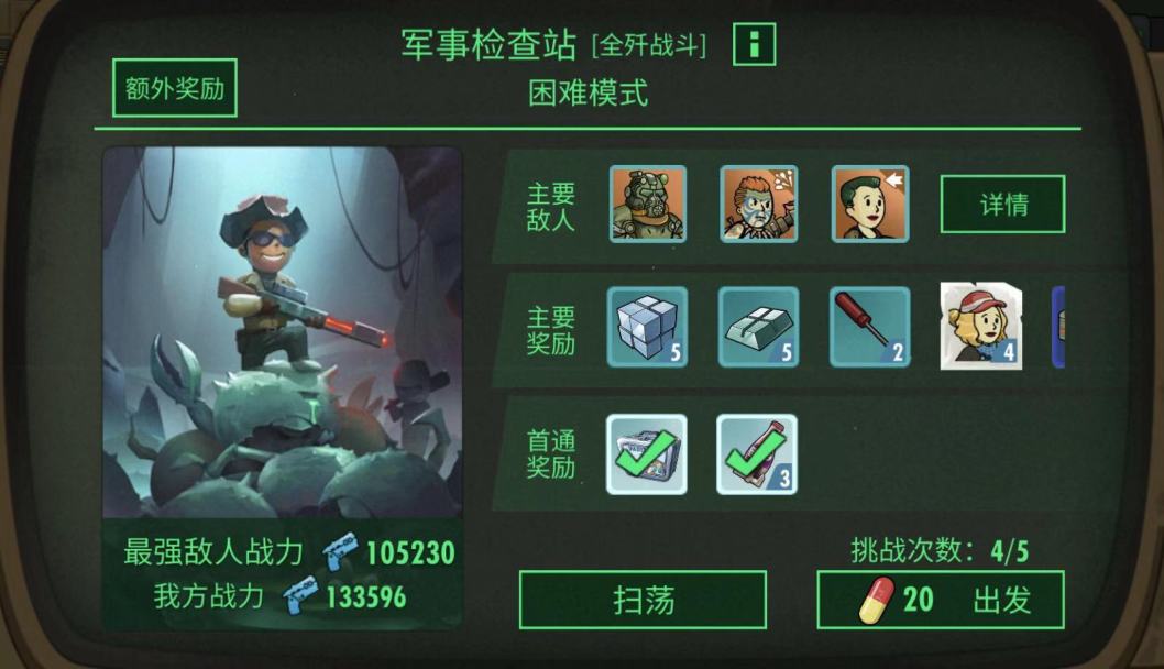 手刷材料推荐之困难军事检查站(5核弹速通摇奖+答题附图文视频)