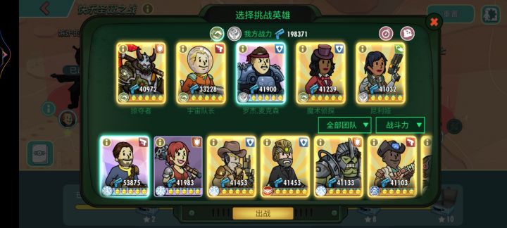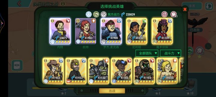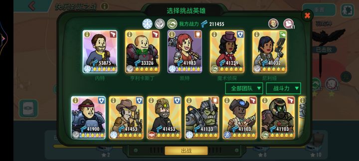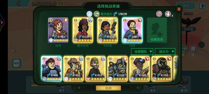 分享一下这一次圣诞活动打法。第一关的变种人,阵容如图。小心前排被秒,开一倍速。掠夺者,尸鬼,詹姆斯为主要抗伤,之所以不上尼维亚是因为詹姆斯只清理50的辐射,剩下的50辐射配合尸鬼技能能更加有效抗伤。打法是除了尸鬼以外其他英雄有技能就放,尸鬼技能需要等到场上无尸鬼后在释放召唤尸鬼抗伤。剩余两个英雄位置为主要输出,你看那个顺眼就上那个。但是这两个伤害会比较高。第二关的蟑螂王。阵容如图 这一
