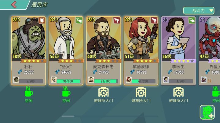 众所周知,该游戏中的资源总共有4种,分别为1电2食物3水4瓶盖本攻略将详细介绍各种资源的获取优先级与获取途径一:优先级按照该游戏的本质为优先提升人物战力来讲,优先级为:电,水,食物,瓶盖电:电力能提升房间等级,间而提高人物战力等级上限与资源生产量和上限,同时因为电力无法通过各种赠送的资源包获取(除新手),使用电力升级资源房间会补偿资源来讲,推荐优先生产电力水:水可以提升人物特长,特