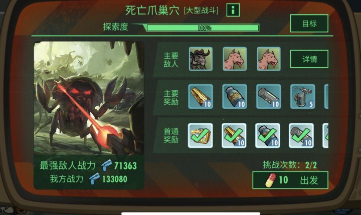 度过了游戏前期的战斗阵容培养之后,我们就应该考虑如何给自己的避难所提供补给了,一套成熟的R、N农民卡是势在必行的。这些农民卡就像土壤,使SSR能绽放出美丽的花朵。除了提高农民的星级,还要提高其生产技能和生产工具。在巧手先生供给战斗阵容之外,我们还可以手动刷大型副本来额外提供一些资源。今天我们就来图解一下如何快速刷死亡爪巢穴大型副本。阵容的选择上,我们选择雇佣镇长大人,原因是他的种族免疫辐射,而