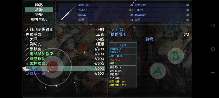 战斗外自己烹饪的东西回不了血😓