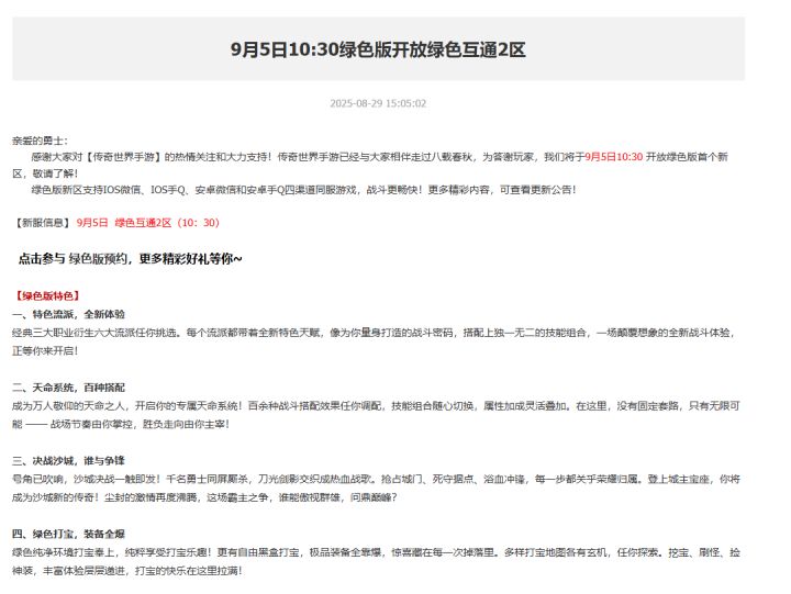 备战9月5日传奇世界绿色服