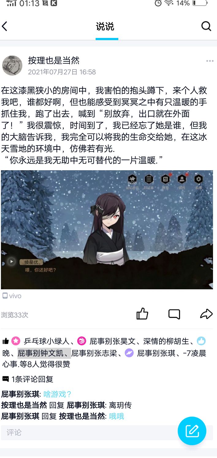 其实可以写一点男女主的恋爱文嘛🌚我从一开始玩这个游戏就是被优酱吸引但是到了后来感情线越来越少了真的好想有一个男女主结婚的结局啊要是能看到甜甜的同人文就更好了😝