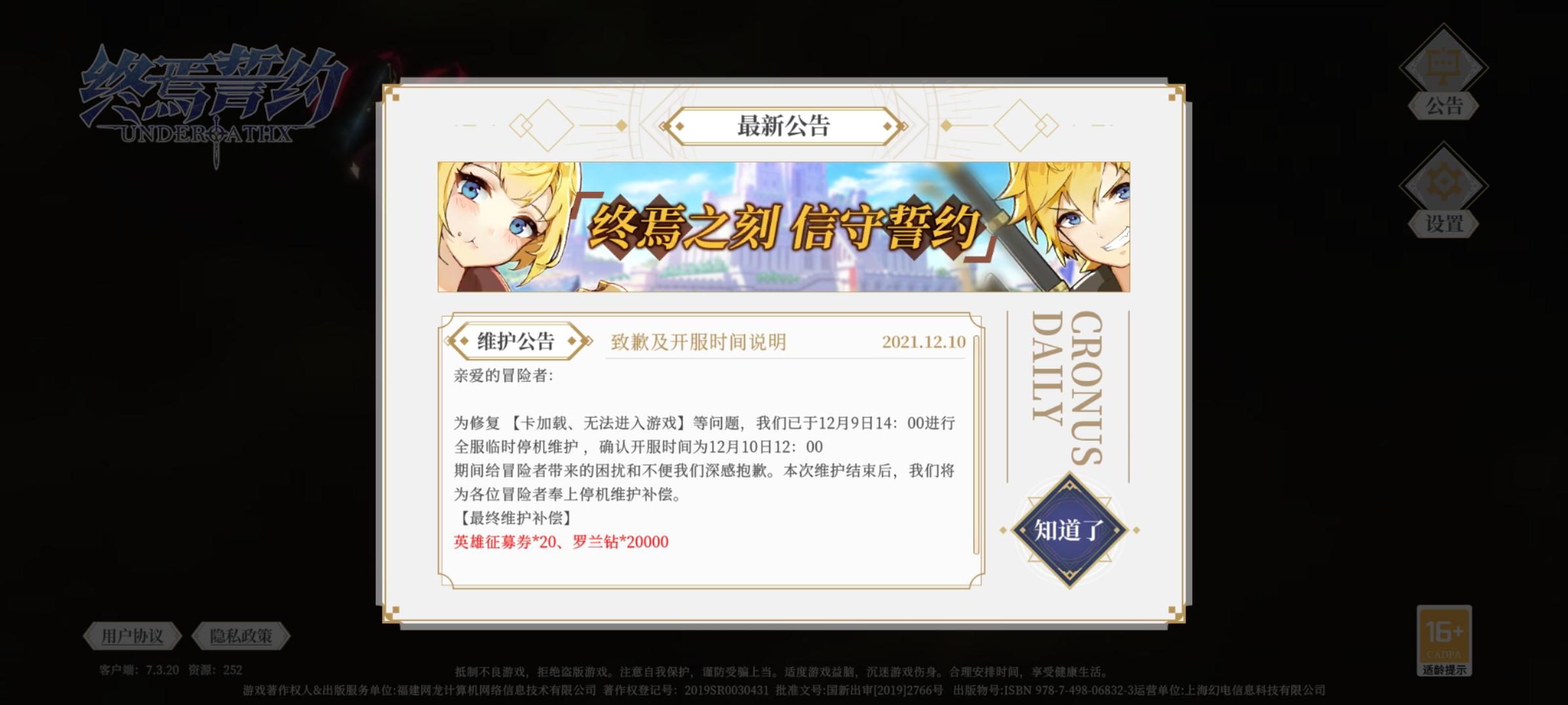 终焉之刻 信守誓约=我们关服的时候绝对给你开服补偿