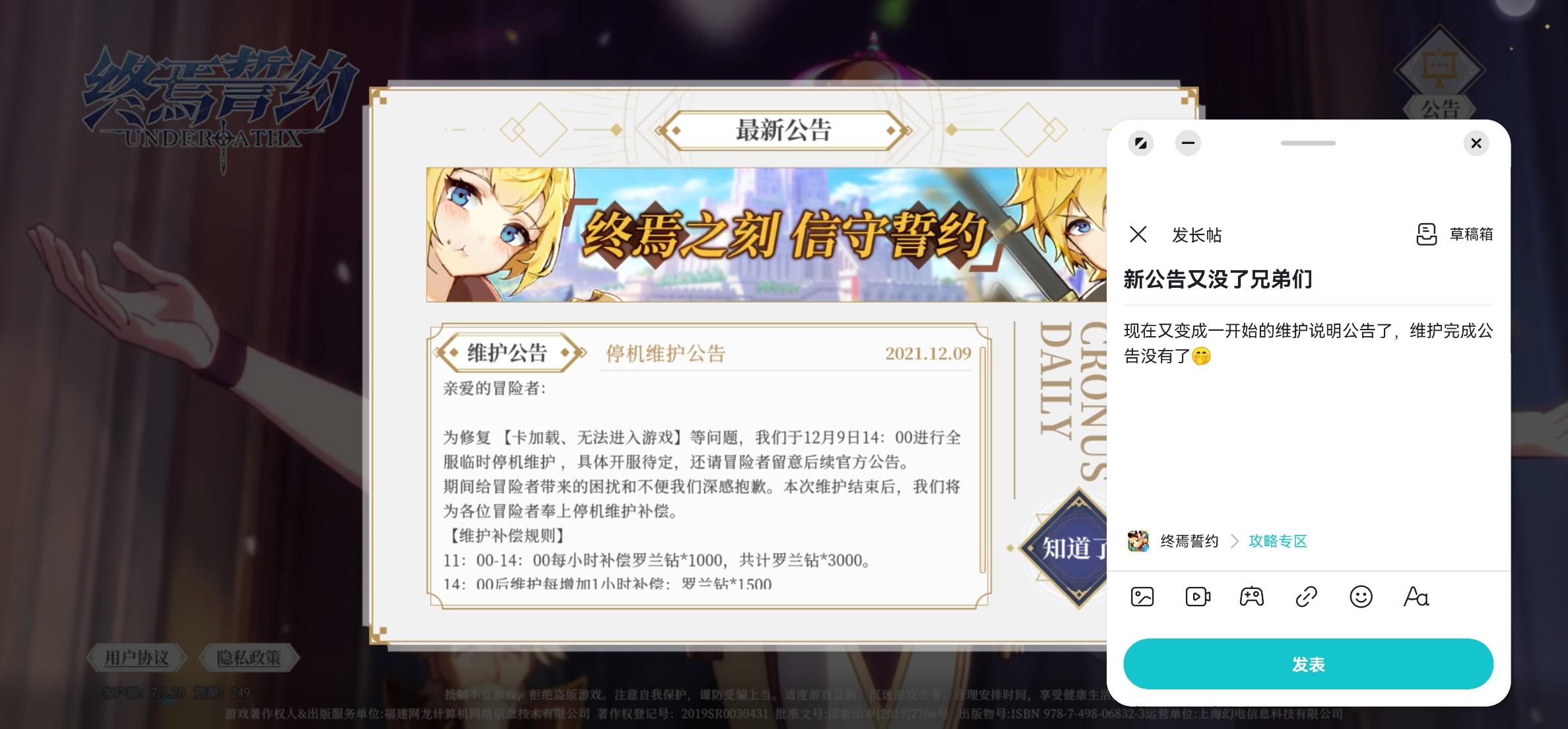 现在又变成一开始的维护说明公告了,维护完成公告没有了🤭