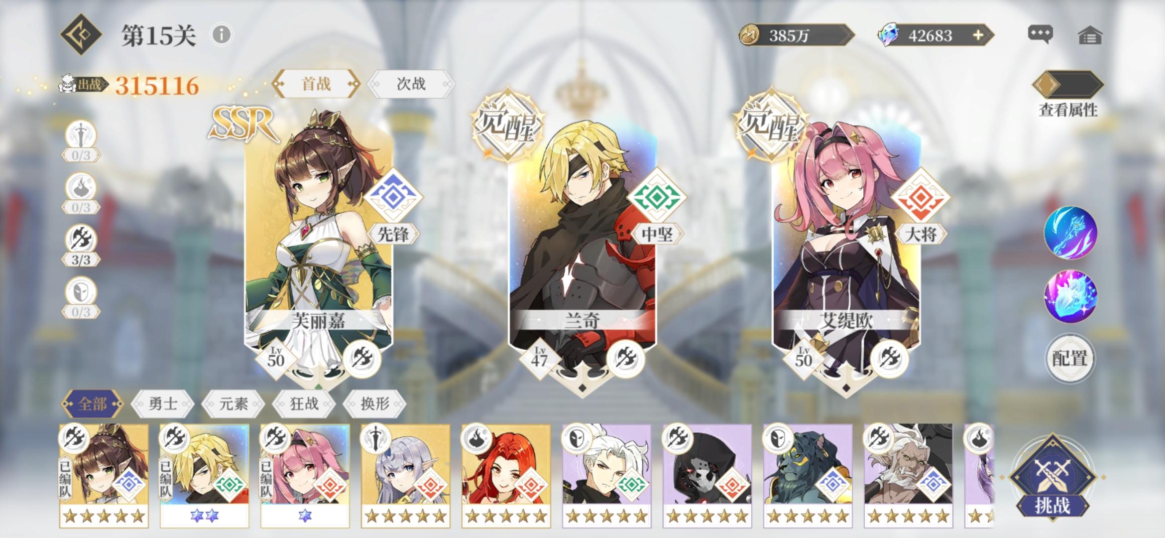 关于命运盛典,我第一队31万是自己主要的狂战队,但第二对我不知道怎么配,打到15关就寂了
