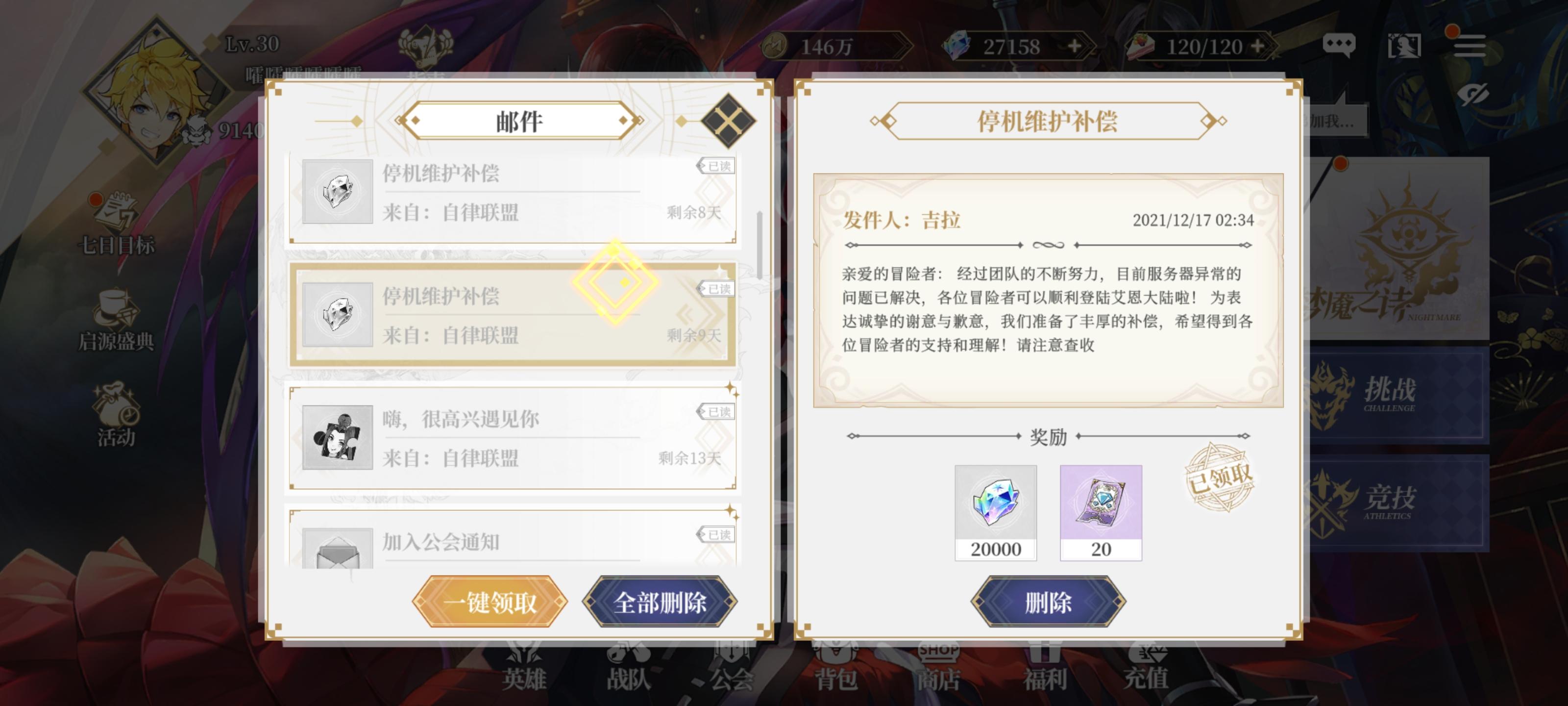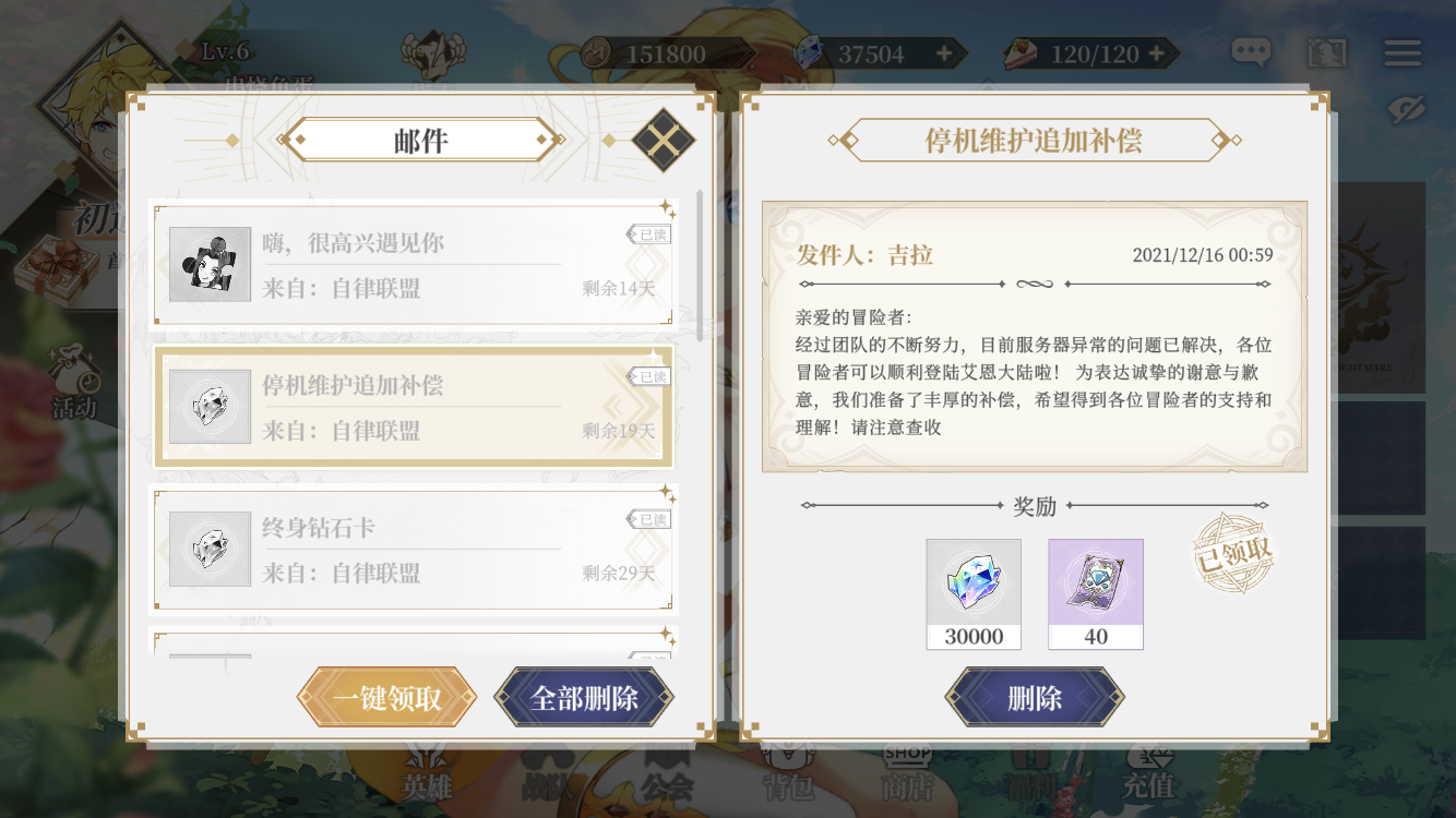 说好的50000钻+60征募卷,为何我的补偿只有30000钻+40卷,剩下的2万+20呢?