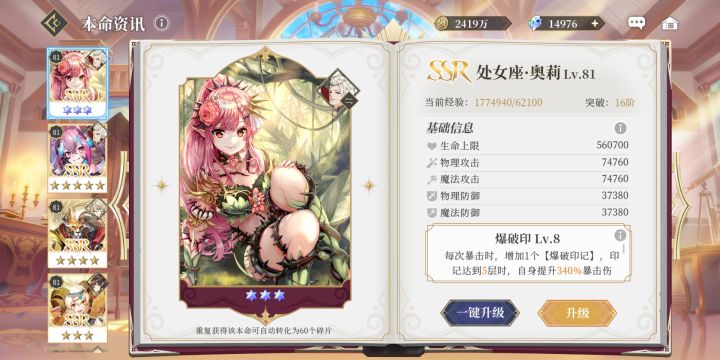 请官方策划珍视一下我们氪金玩家的利益,星离这个卡投资意义何在?游戏数据伤害远高出防御,星离的吸血根本没有实际意义,严重和狮子命魂脱节氪金养卡不如白嫖图鉴有价值。