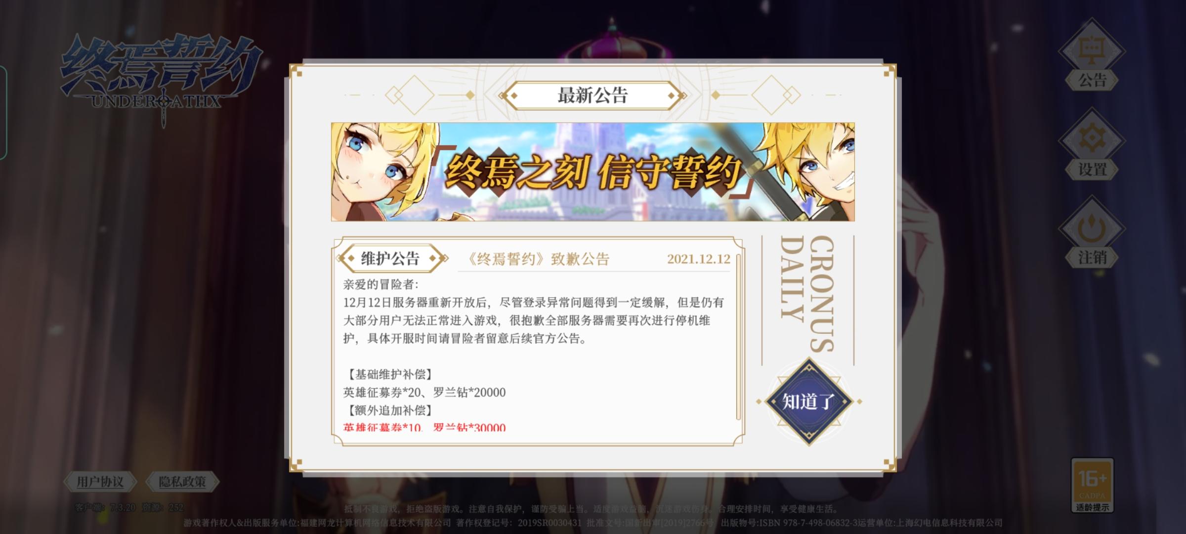 终焉誓约吐槽群。送补偿礼包连抽。还没有领的+Q群339458212