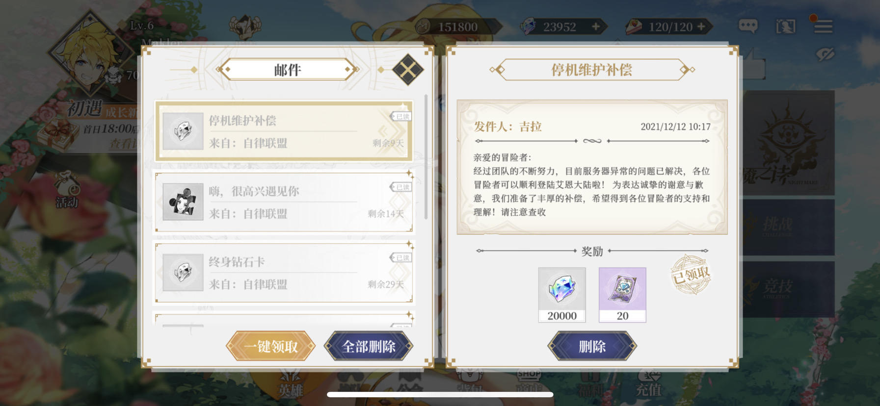 怎么奖励还是2万钻和20抽