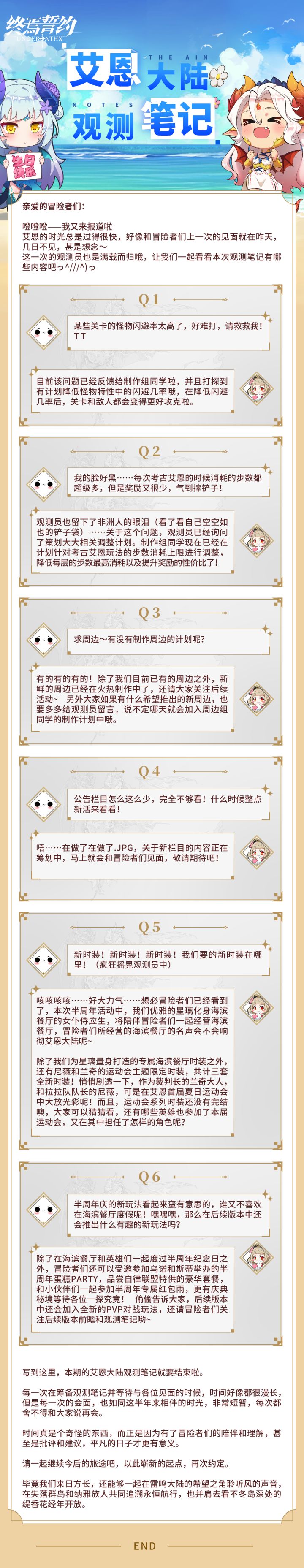 #终焉誓约# 冒险者们好呀~好久不见!【艾恩大陆观测笔记】半周年版来咯!也请冒险者们多多留言反馈,我们会定期整理笔记哒,下期见哦(•̤̀ᵕ•̤ ๑)ᵒᵏᵎᵎᵎᵎ