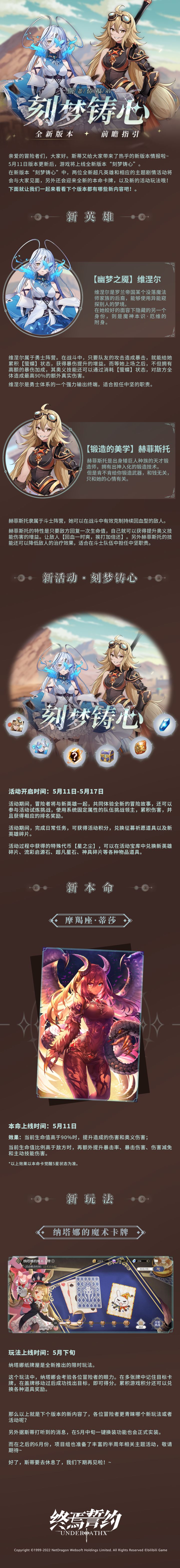 #终焉誓约# #斯蒂情报站# 各位冒险者好呀,《终焉誓约》即将迎来全新版本『刻梦铸心』的更新!情报站又来啦(•̀ᴗ•́)و