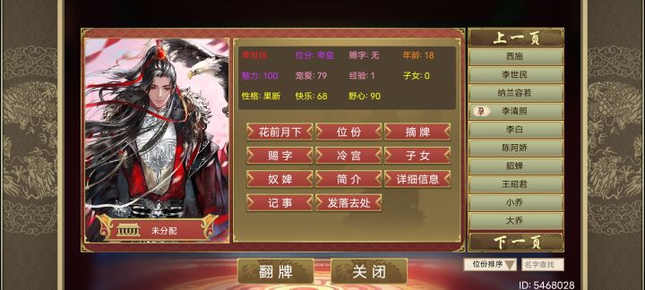 首先呢,后宫嘛,懂得都懂,就是满足感收集感。那么,普通的女性名妃玩多了(宠幸)当然就腻了,所以有人就盯上男宠了,那么男宠就算是名妃也是不知名虚构的,我们何不如盯上名臣甚至帝皇呢?这个是我新开的档,赵云,李世民,李白都统统拿下!(李白跟李世民都是面膜换脸,李世民的典藏皮肤竟然在面膜里,太好了!)ps:李世民面膜编号454其实想把名臣甚至是帝皇拉进后宫很容易,如下示图:首先开自定义,然后只需要