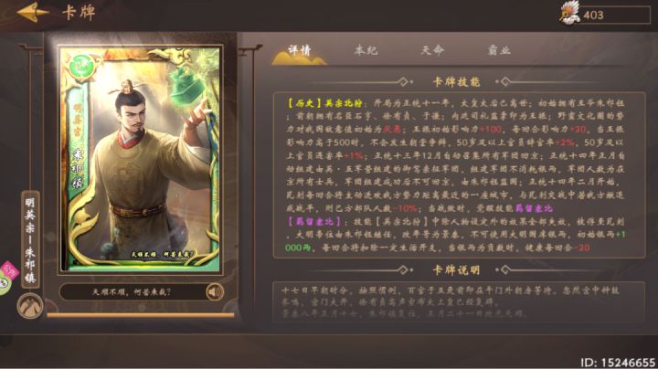 前言:瓦剌留学生主打一个叫门,没啥好说的。有几种不同的玩法,每一种都有不同的体验。帝卡级别:白卡(也就这级别了)本纪臣卡:不需要(切记不要带开国六公爵)本纪妃卡:不需要(可以带随从卡)高配策卡:阅兵戌国、天发杀机、天命至现、三顾茅庐核心策卡:三舍法、分封制、魏晋风流、君子六艺、筑台望母、五月端阳、刑徒充军、寻画有方(十五周年纪念策卡)本纪思路及难点:前期没什么难点,本纪主要难点在于近臣