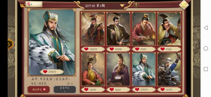 帝成更新了53期立绘,我一直想对立绘的人气进行排名,可是官方没有听我的意见搞一个立绘人气排行榜,那我只能自己来了,这次是人气排行前三十看后期能不能更新(排行截止于7月21日中午十二点)人气排行榜第一:诸葛亮(不愧是丞相,就是这么厉害) 人气:2190575 第二:赵飞燕 (早期四大美人立绘的第一个) 人气:2065205 第三:汉光武帝刘秀(帝王之气侧漏) 人气:1304725第四:湘夫人