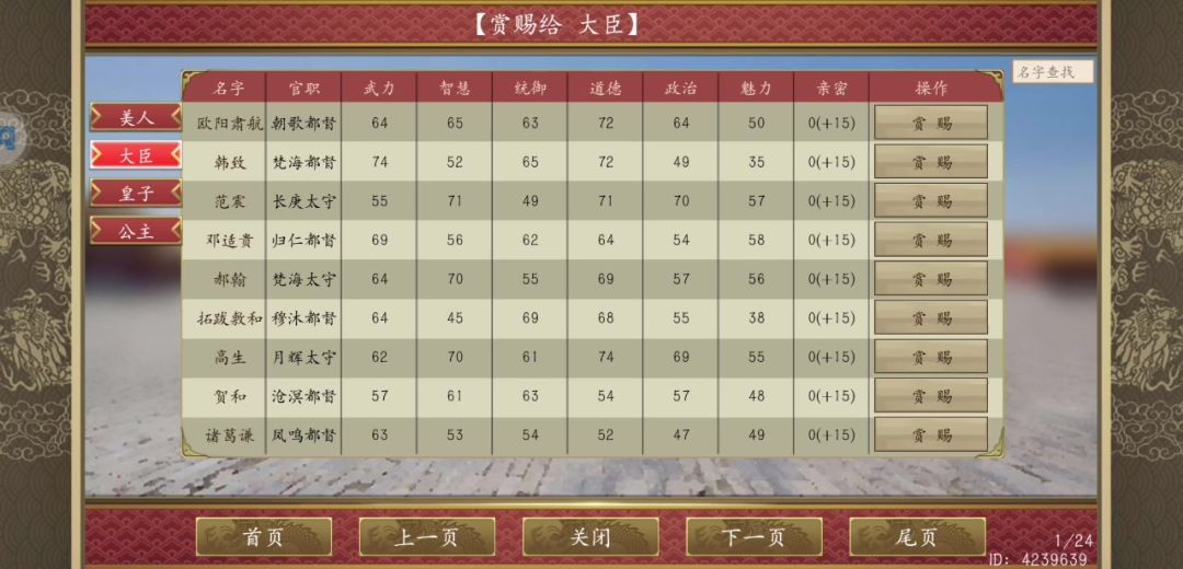 第一次送大臣珍宝,一次性送上百个,属性瞬间拉满,霸王道杂描述的随机加5点属性是每个珍宝随机加5点,仅限于第一次送