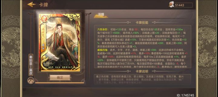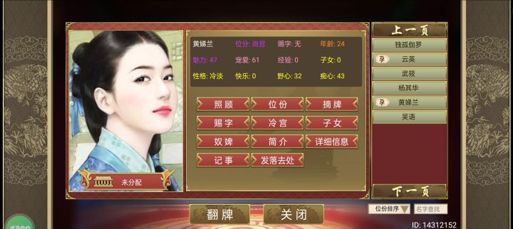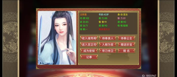开局妃子卡带牛郎织女(织女保证皇后选秀必有明妃,牛郎保证招募概率名臣明妃) 上朝开征辟制(只需要那个+10%名臣概率,对明妃有效) ,这样1.7月一品楼和4.7.10月云湖渡就不用刷那么多次了随从最多一次招3个并且还有潜力可以加(配合其他策卡加随从潜力,五行拿个加潜力的buff更好) 高属性名臣明妃(密探)随便刷几次就好了