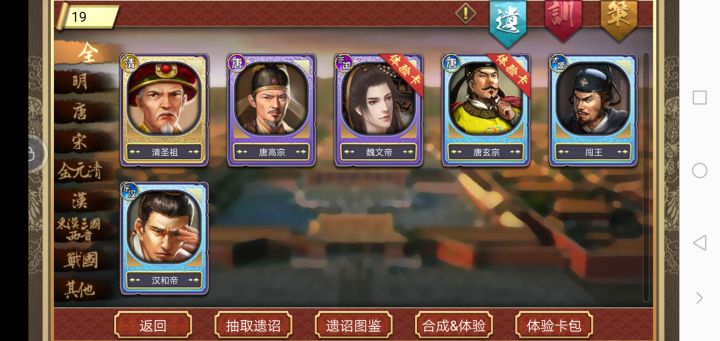 先研究一下本纪思路:带安史之乱,这个要求太高,有年限限制,科举不一定能科举到这三个人儿吴道子亲密度足够推荐盛唐三绝,可以选择李白,所以三顾茅庐选出吴道子,吴道子亲密度凑够40会推荐李白贵妃本纪要求宠爱度足够的贵妃,可以使用众里寻她。。。。。。妃卡老规矩,霸王别姬,地狱模式御用大将项羽。开始旅程