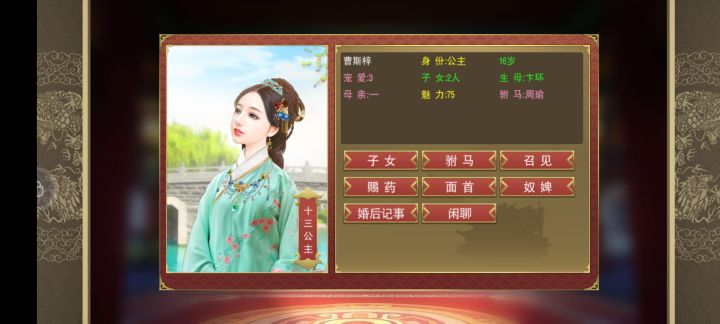 我感觉老子闺女成了老子近臣的外室……朕把周瑜亲密刷到位之后,触发的事件是他求娶朕的女儿,同意了给了封号发现这狗儿子有正妻而且老子的公主才14岁没成年……婚都赐了还能怎么办,本来以为他会在公主成年之后,就抛弃糟糠当驸马。没想到等女儿16了,显示的驸马是他,但是他的个人页面正妻没变,小妾里面也没有朕的女儿,但是孩子妈里面有朕的女儿,朕的女儿刚成年居然已经给他生了一个两岁的儿子一个一岁的女儿…………